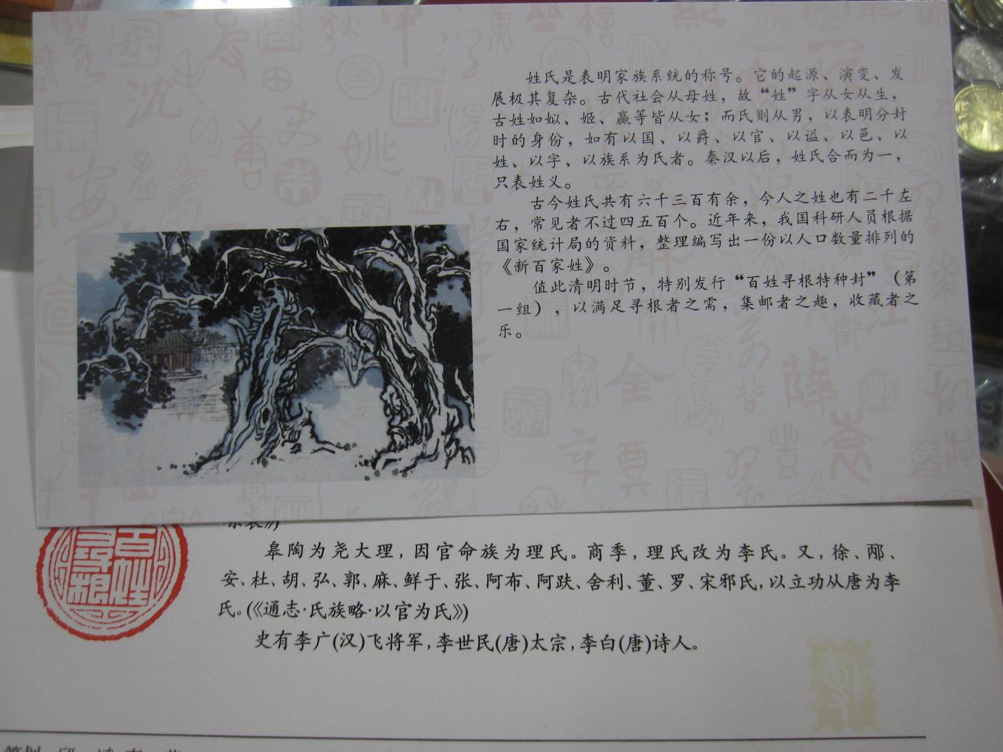 暨新百家姓一组每个封带一枚中国邮票博物馆明信片,中国邮票博物馆炎黄文化艺术传播中心联合发行。