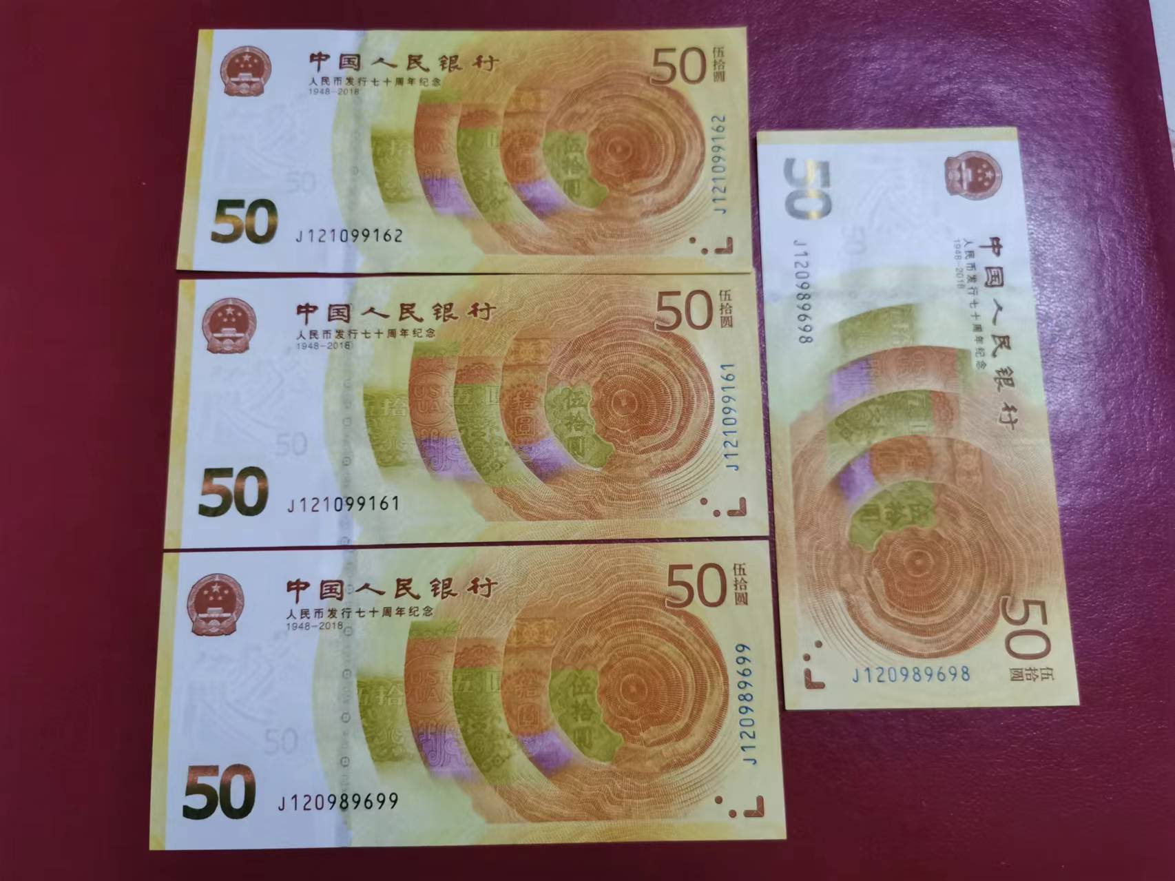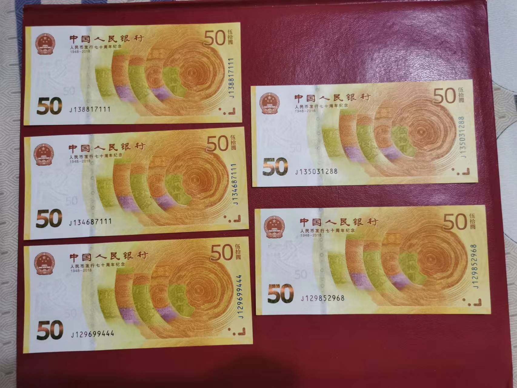 70钞豹子号,朦胧尾8等。。。一张角有点软,9张一起出1410元