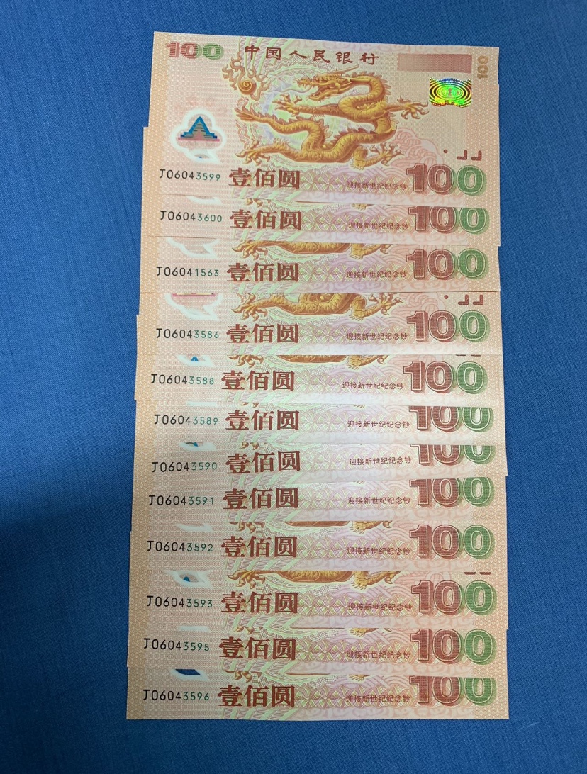 出千禧龙钞、大龙钞散连12枚。品如图,无折痕无掉皮品相完美,有双尾88、99、00,一起出1320元/枚包快。