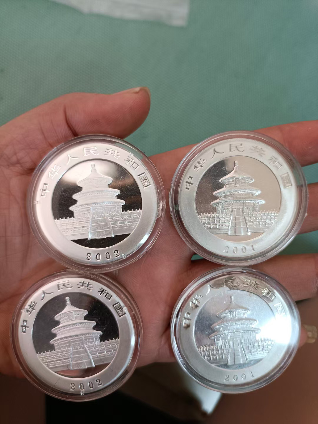 2001年200年一盎司熊猫银币各2枚 共4枚.售1200元,4枚一起出。