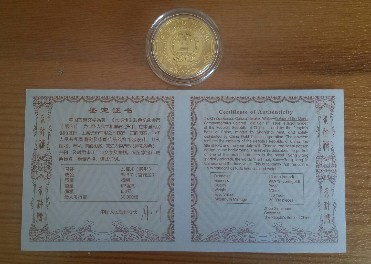 → 出售:水浒传第一组金币1枚(1/3盎司)