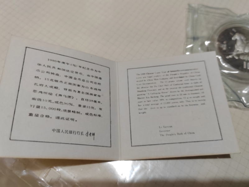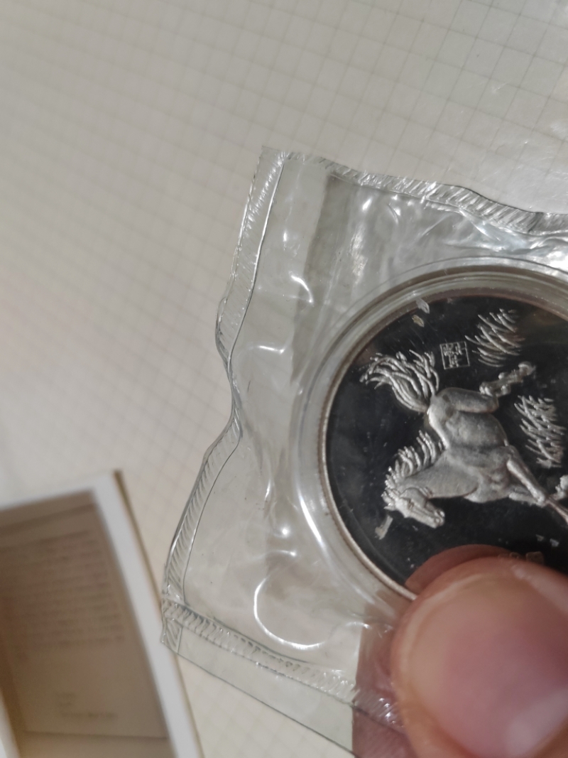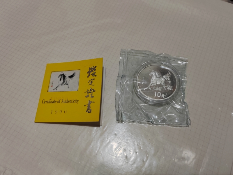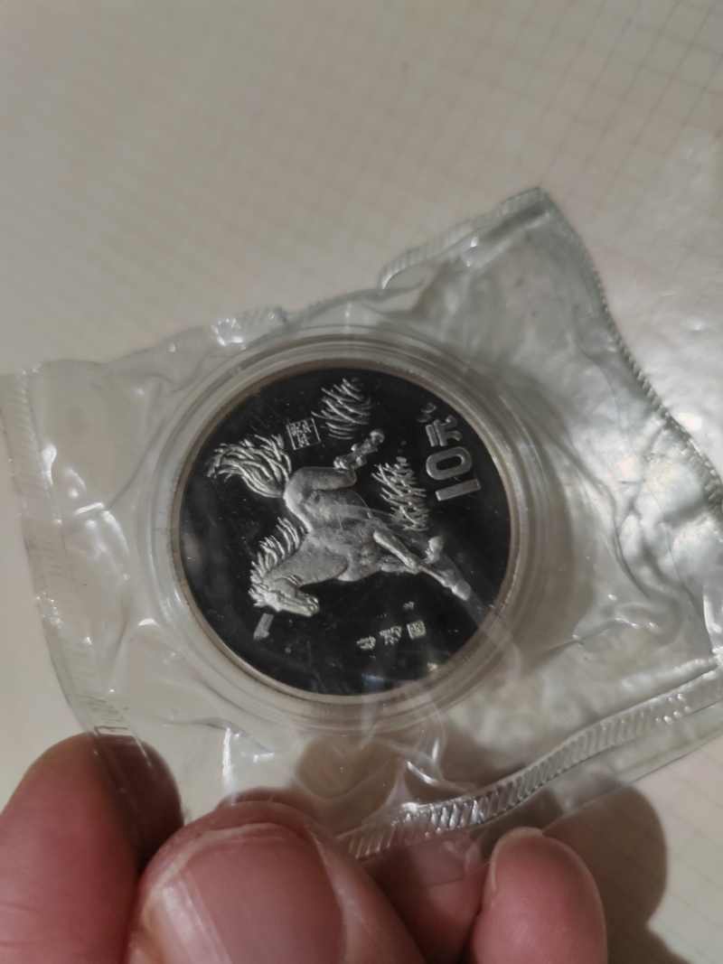 90年15克银马一个,原塑封带朦胧号豹子222证书,上方轻微有点微薄白雾不算明显。1300元