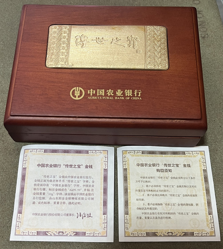 → 售 中国农业银行发行纯金10克传世之宝 金钱