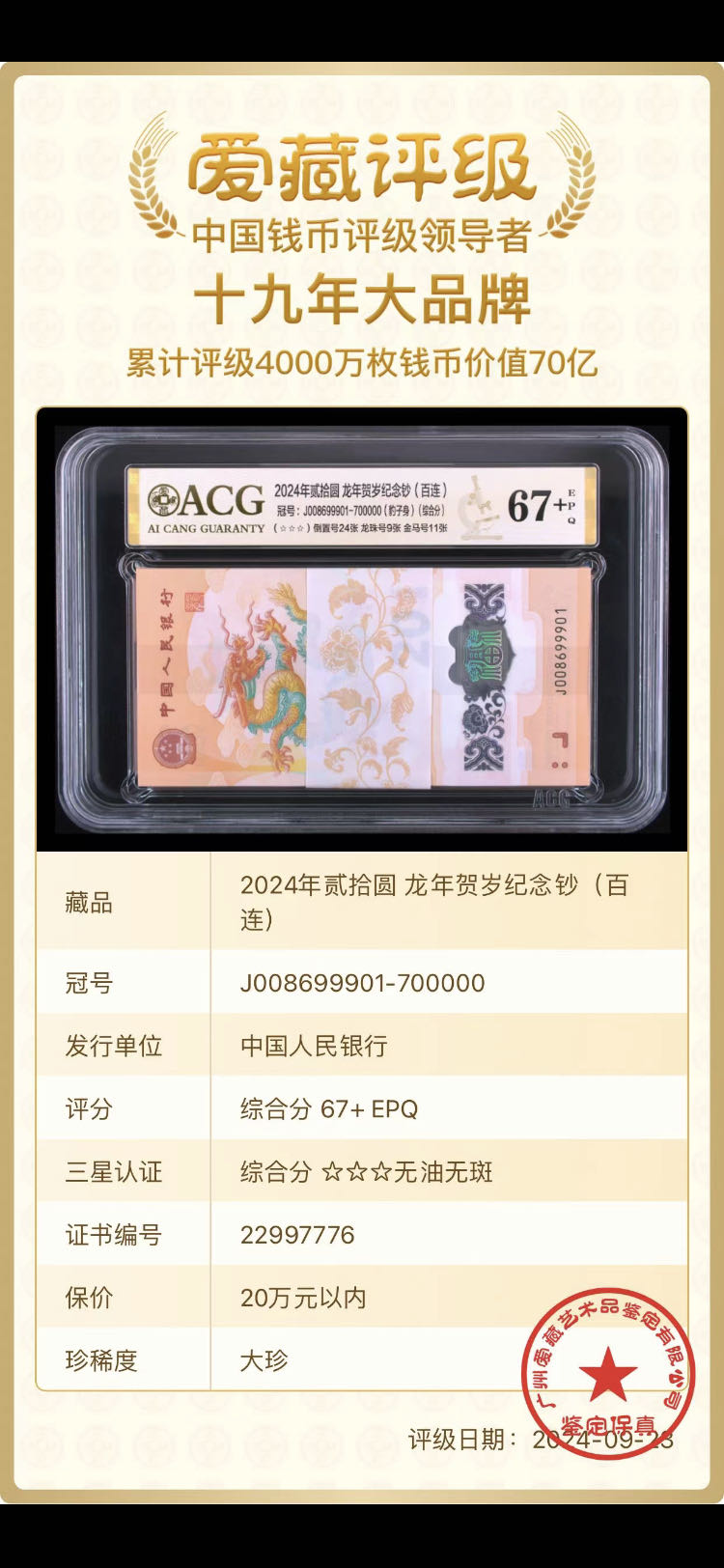 → 园园五个九标刀008699901 价20,88万