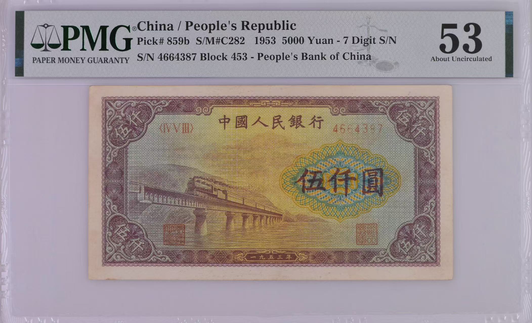 → 一版币渭河桥伍仟圆PMG53分