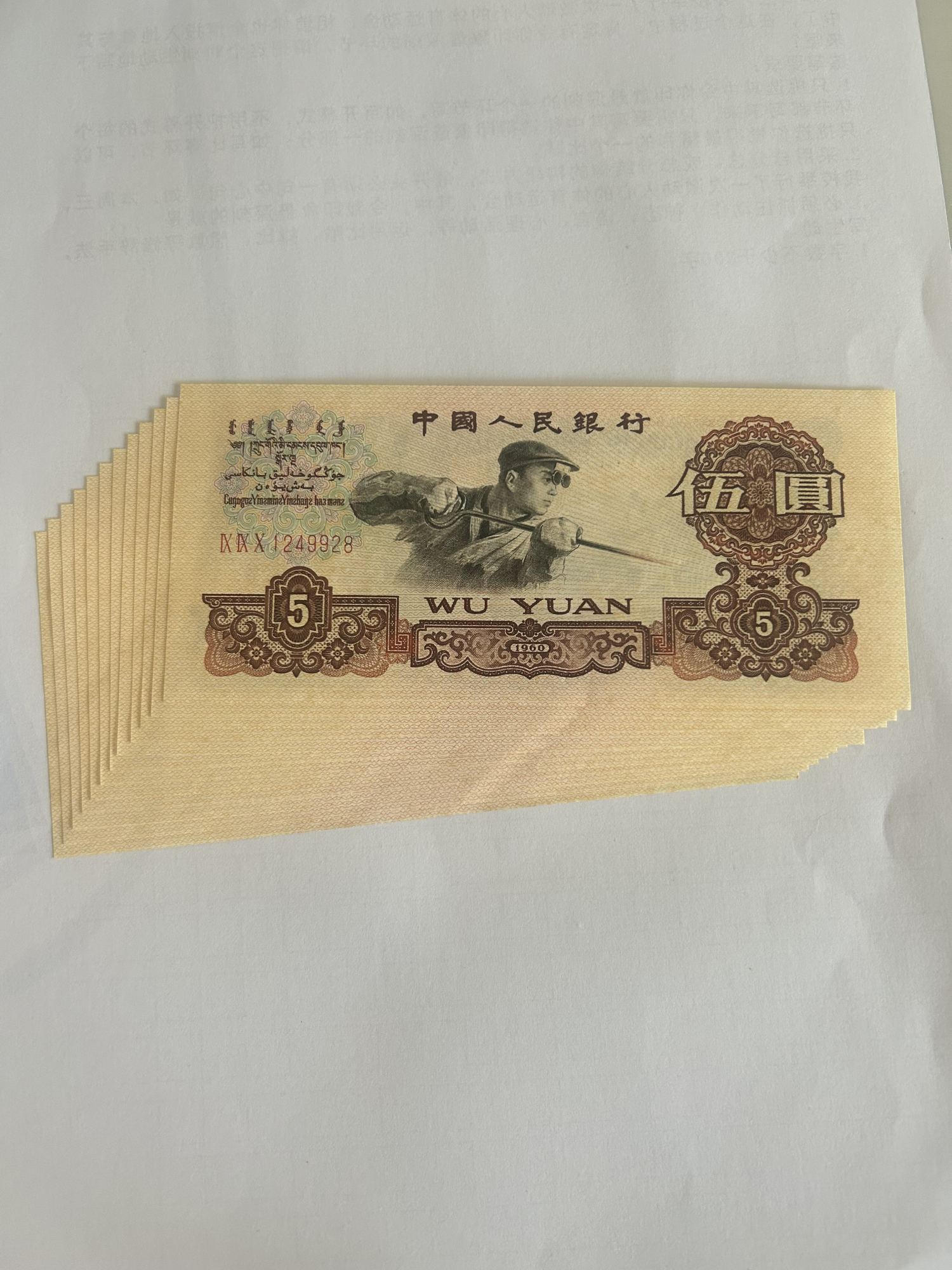 炼钢五元12连,原票无折,一起245/张。