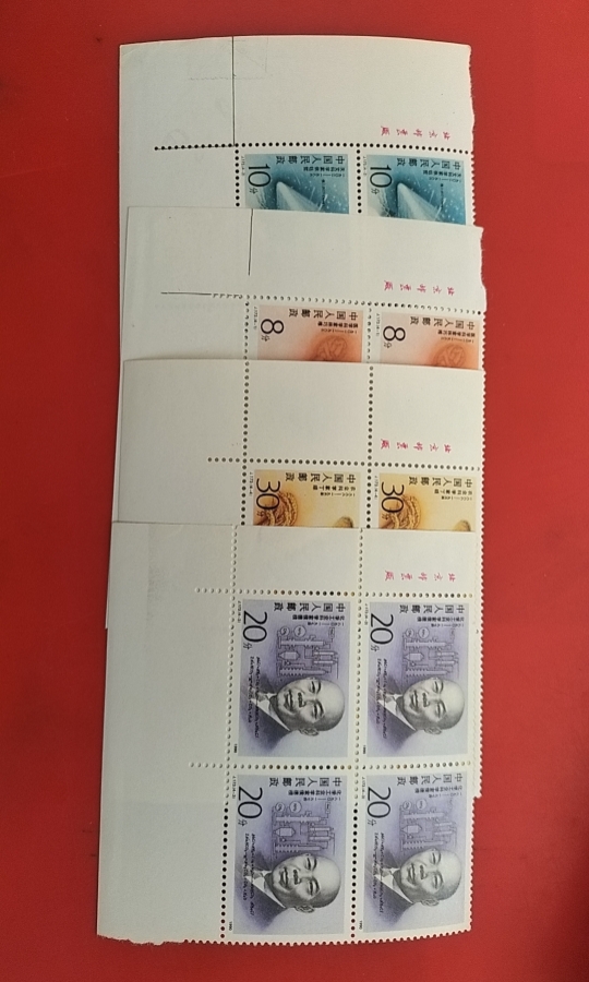 现代科学家第二组,侯德榜漏印“+”号方连,原胶全品,90元包邮