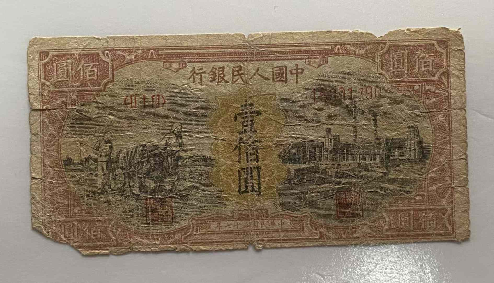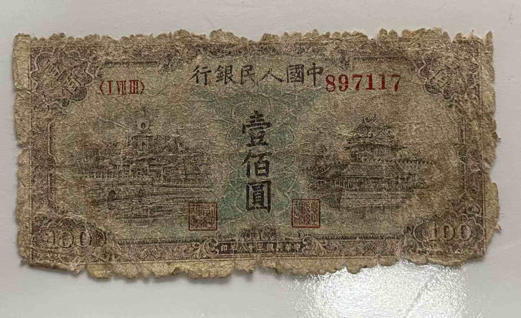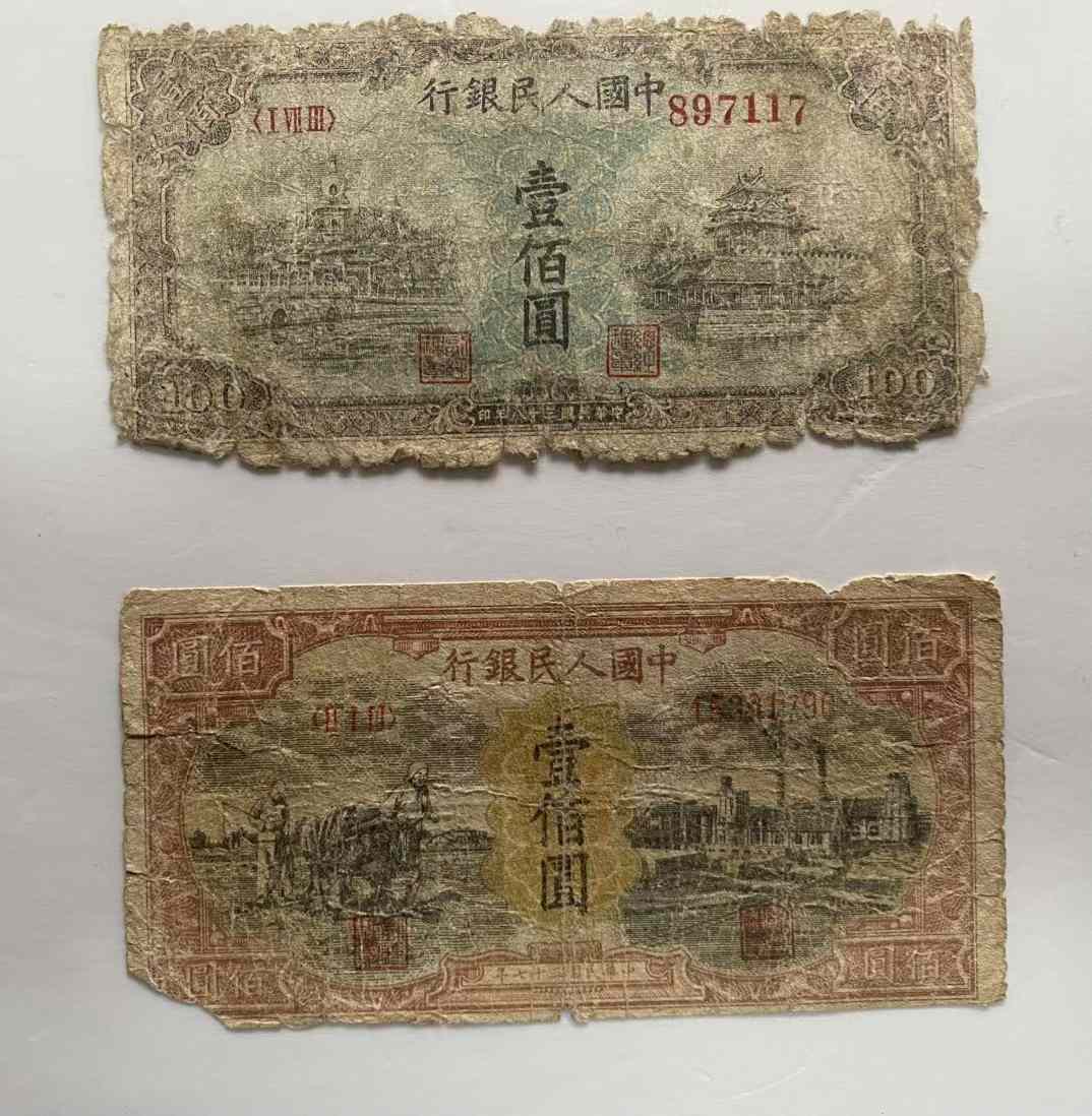 第一套人民币100元蓝北海958元,100元耕地工厂1288元