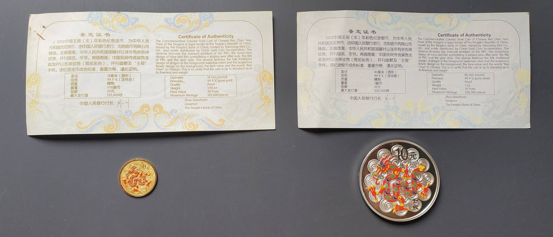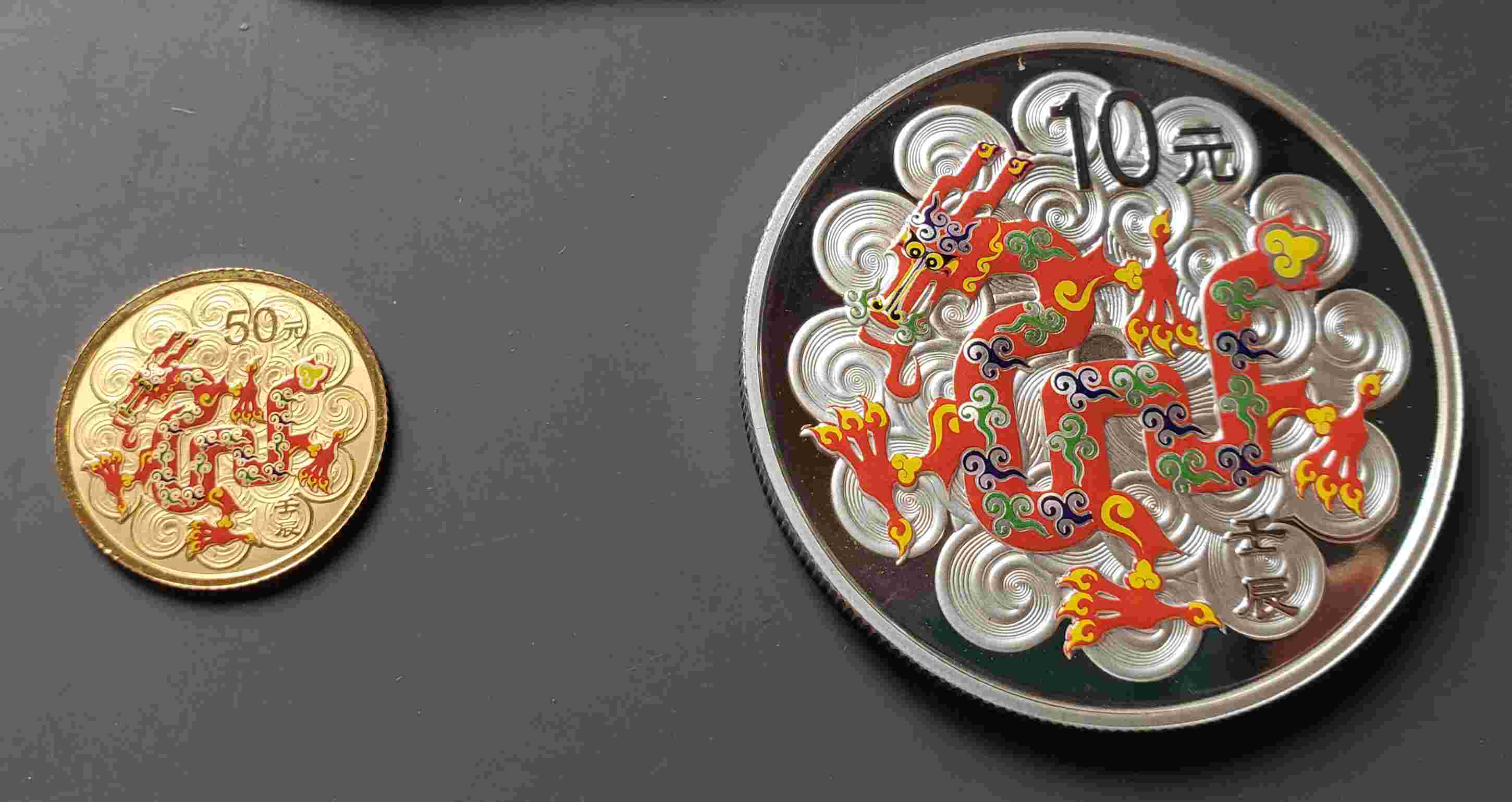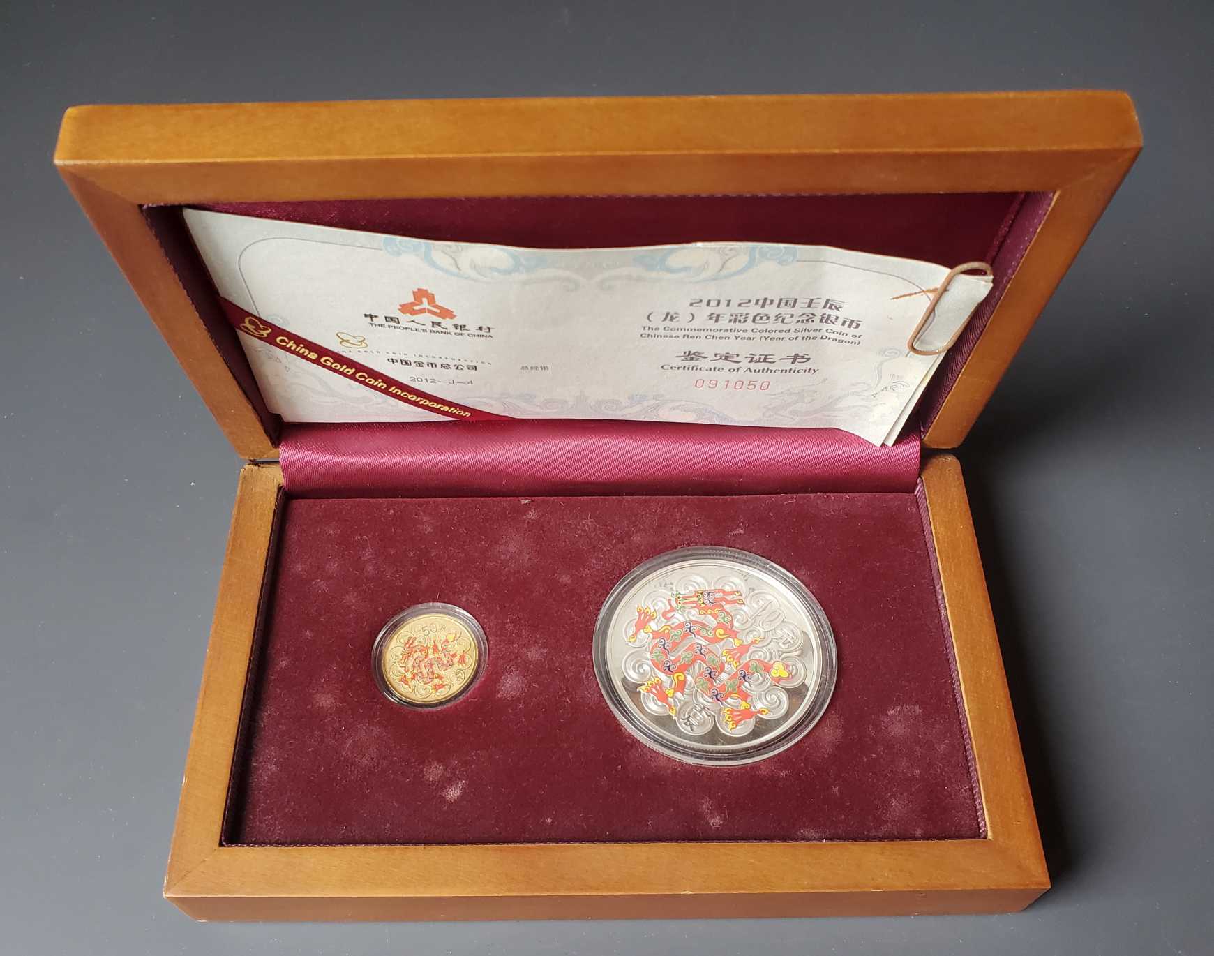 2012年龙年彩色纪念金银币(有证书)