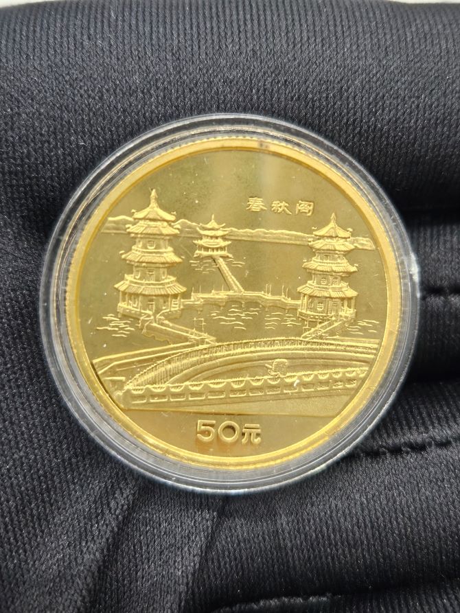 1990年1/2盎司台湾风光第1组春秋阁金币非原封、保真、「无证书」¥ 10500 /枚_多平台、实体同步发布,请联系 13925215426 董先生_微信同号以双方确认为准。_欢迎本地自提,外地顺丰到付。