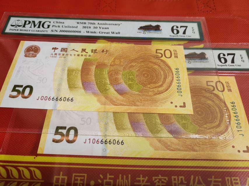 70钞黄金钞人二,园园倒置8同号,006666066 106666066 PMG67分,包顺丰,直接确认有效,款到发货,不议,9888元