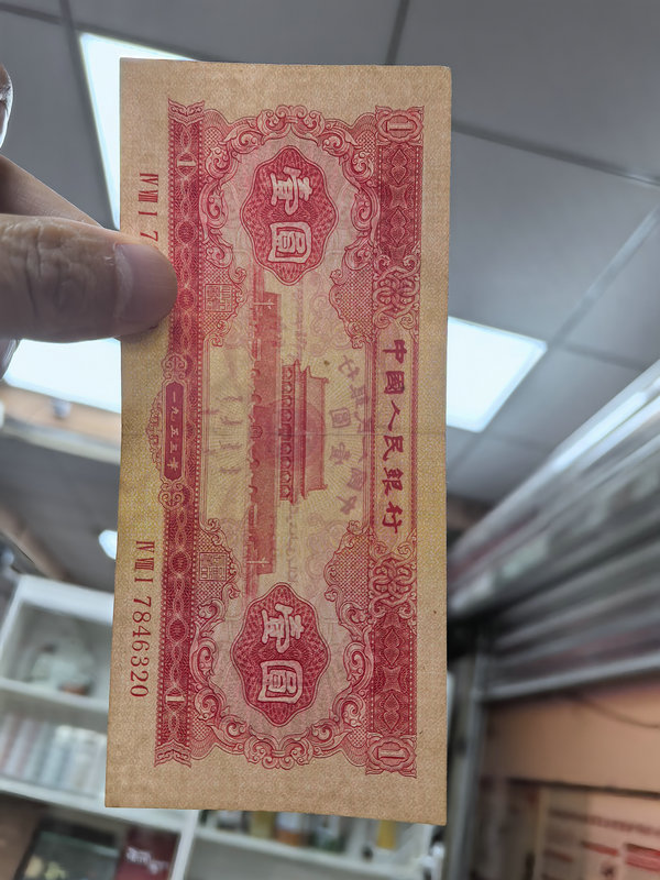 红一元,品相比较好,没有任何开口掉皮,颜色正,折痕轻,售1850元。黑一元原票,没有腐蚀,板子硬,售630元。一张起售,包快递