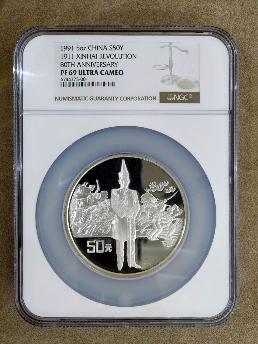 1991年5盎司辛亥革命80周年银币NGC 69、「无原证」¥ 28000 /枚_多平台、实体同步发布,请联系 13925215426 董先生_微信同号以双方确认为准。_欢迎本地自提,外地顺丰到付。