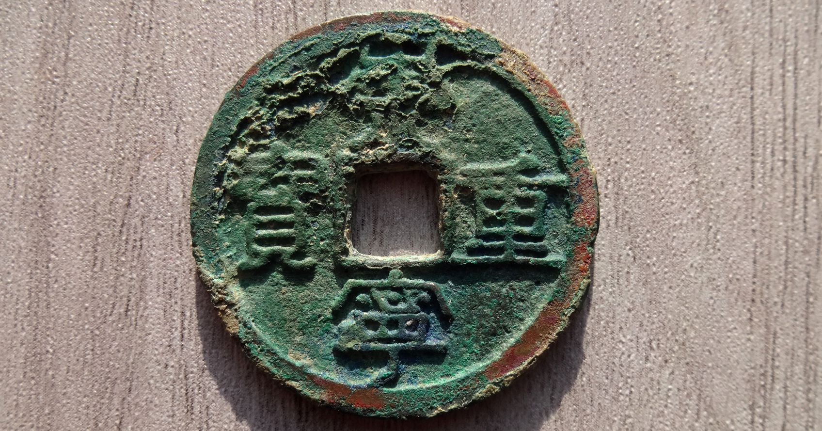 崇宁重宝背巨条纹,少见,无漏裂,如图,喜欢的朋友不要错过。