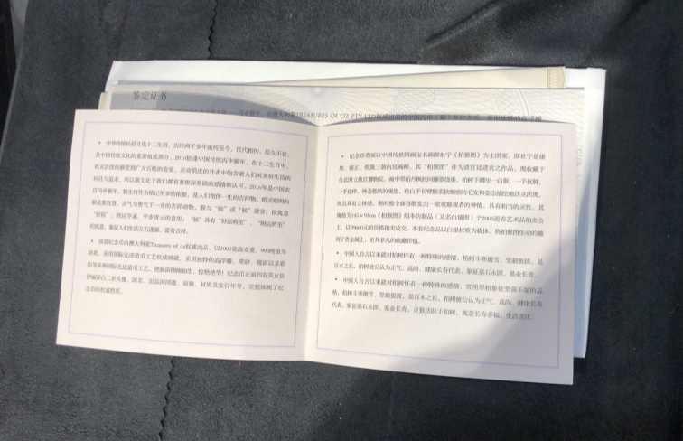 999纯银1000克 背面以中国传世国画宝名画郎世宁《柏猴图》为主图案 正面为伊丽莎白二世女皇图像国名面额材质及发行年号