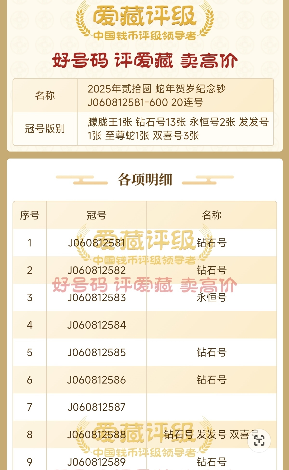 080612581标20连。内有朦胧王一张,卖3000包邮