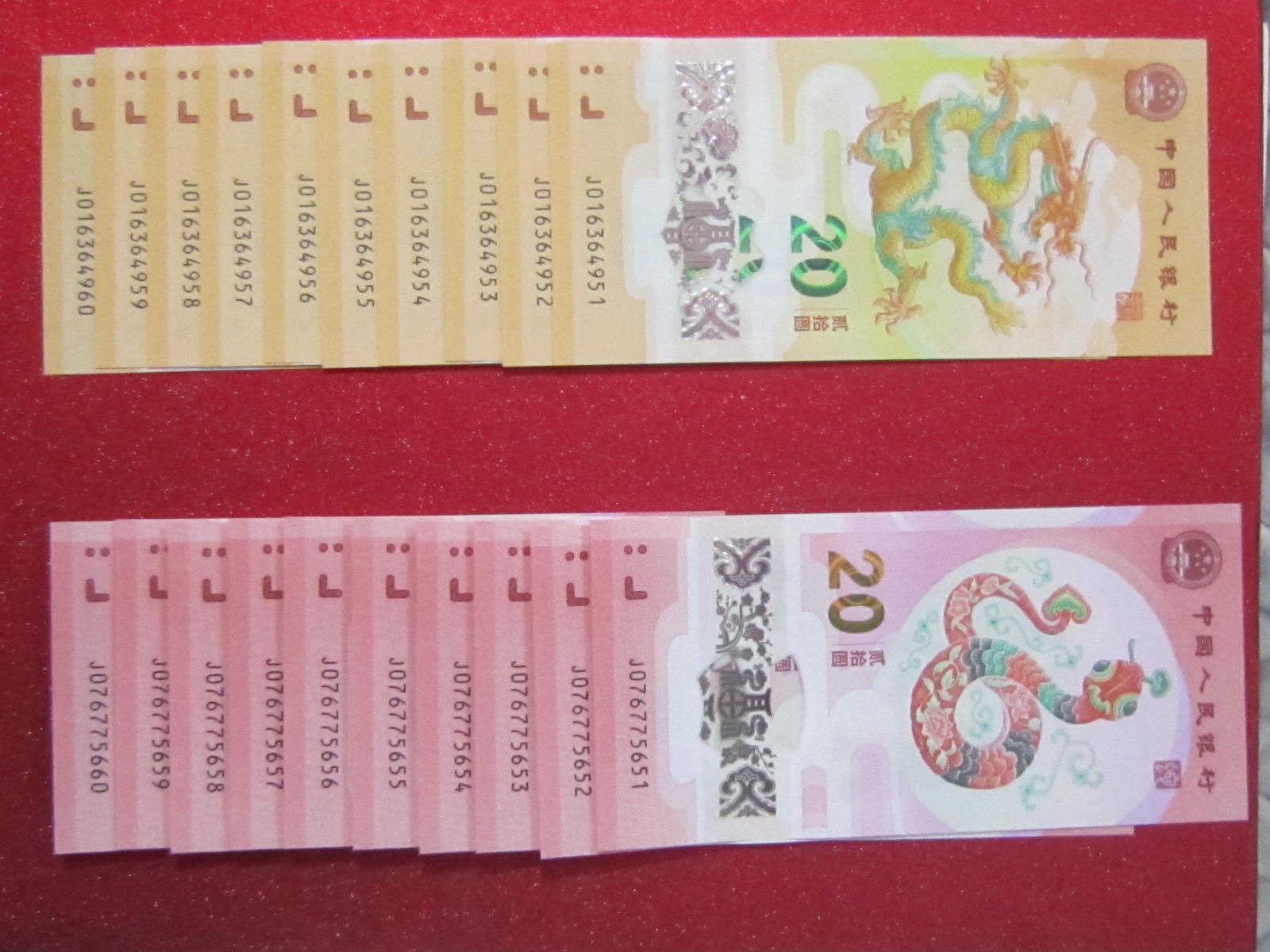 龙钞+蛇钞,标十,尾2位同号。1120包顺丰!