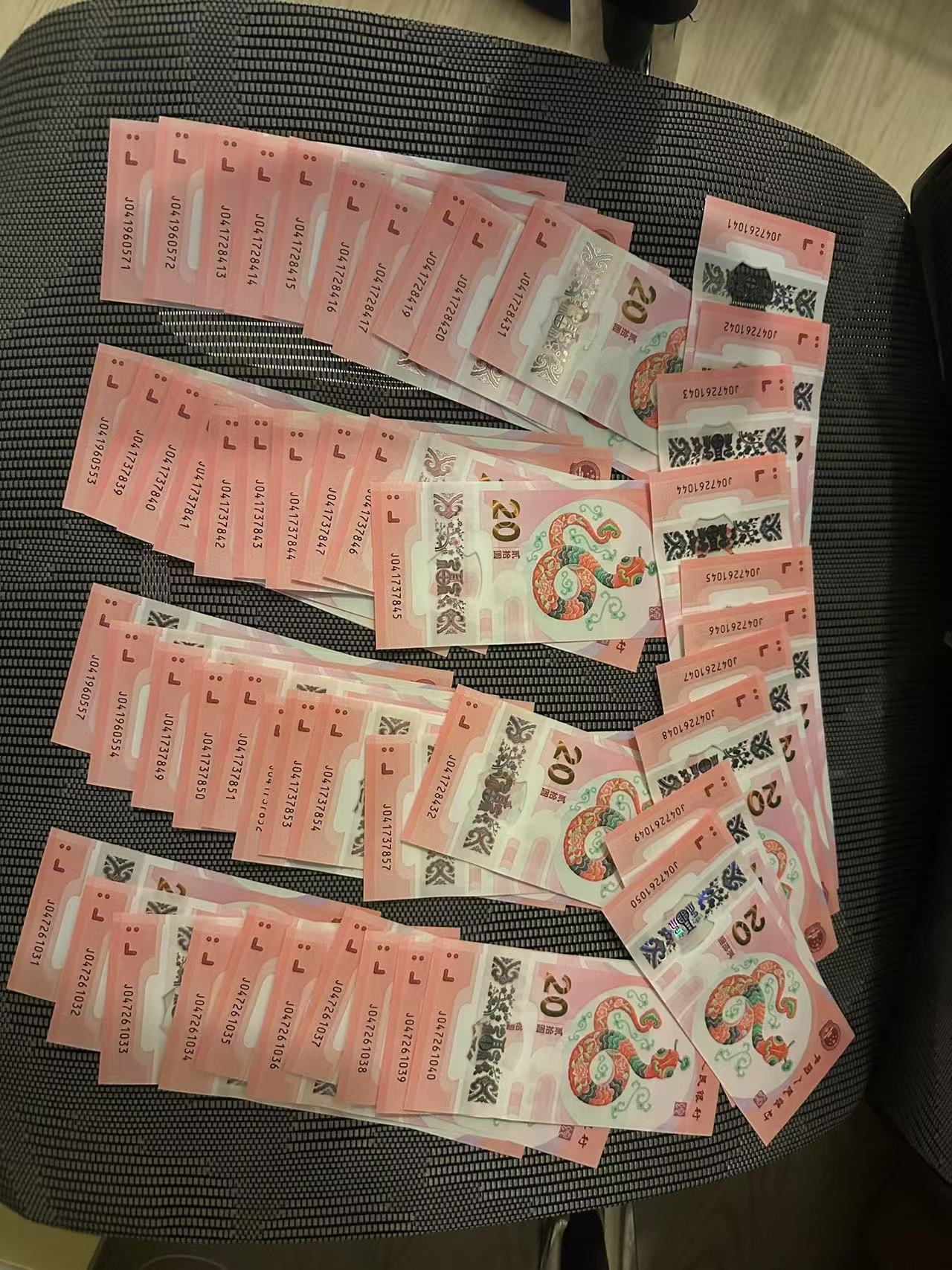 确认50张蛇钞。