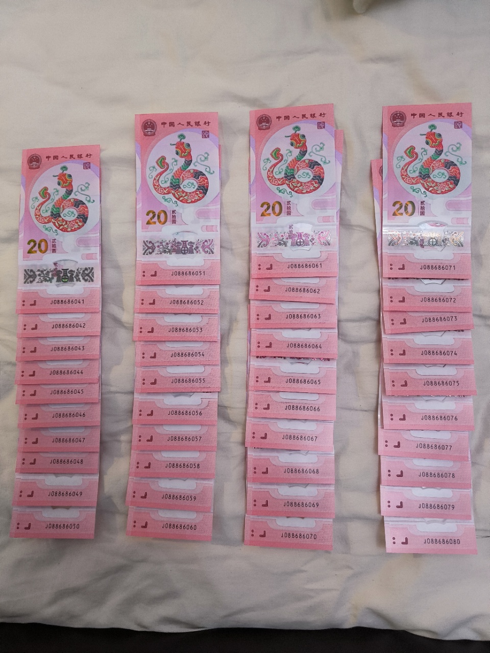 088686041-800,40连号,含088686060-6066-6068-6080,四张068组合,以及61-69倒置号,和6062全偶号。一起售价27800