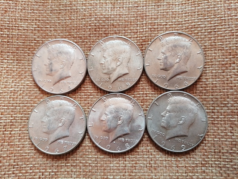 肯尼迪半美元银币(1964年--1969年);6枚齐售不分拆300元包普快!