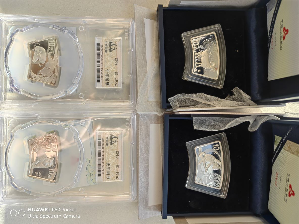 牛650虎570国衡封装包品包邮不符包退,礼盒羊.猴410一个证书均无47,暂不议价。另有生肖扇银空盒出。30一个
