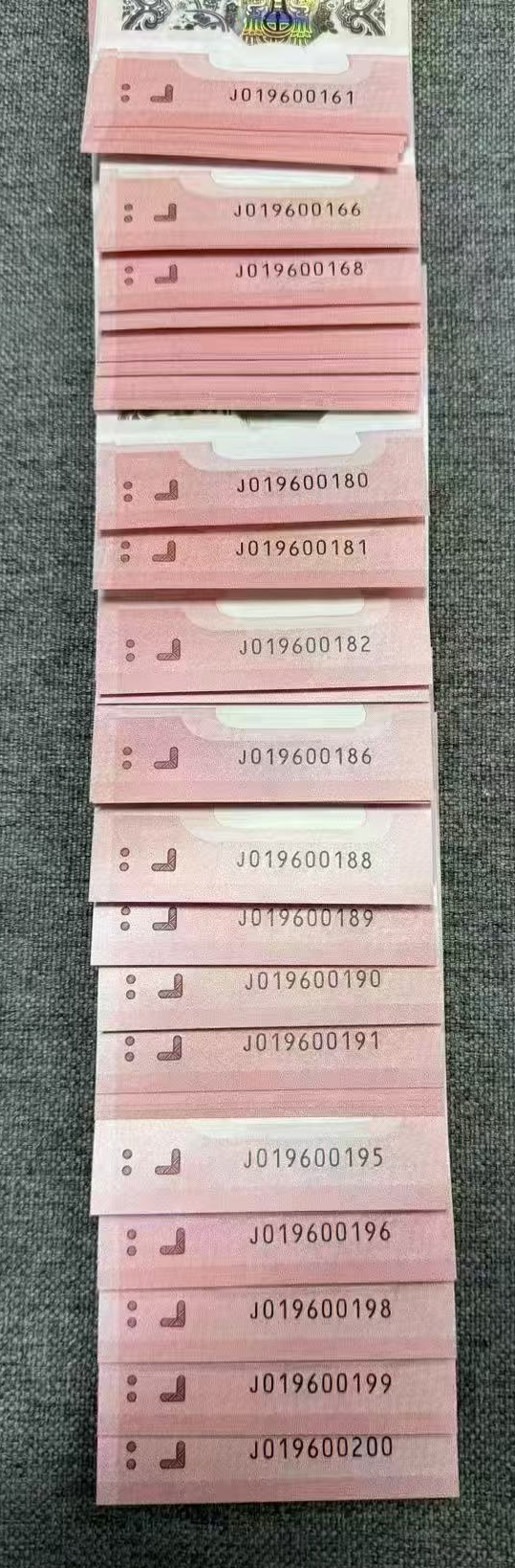 019600161–019600200,40连号(包含14张倒置号,包含尾169/尾88倒置号,一张019600196旋转倒置号,10800包邮