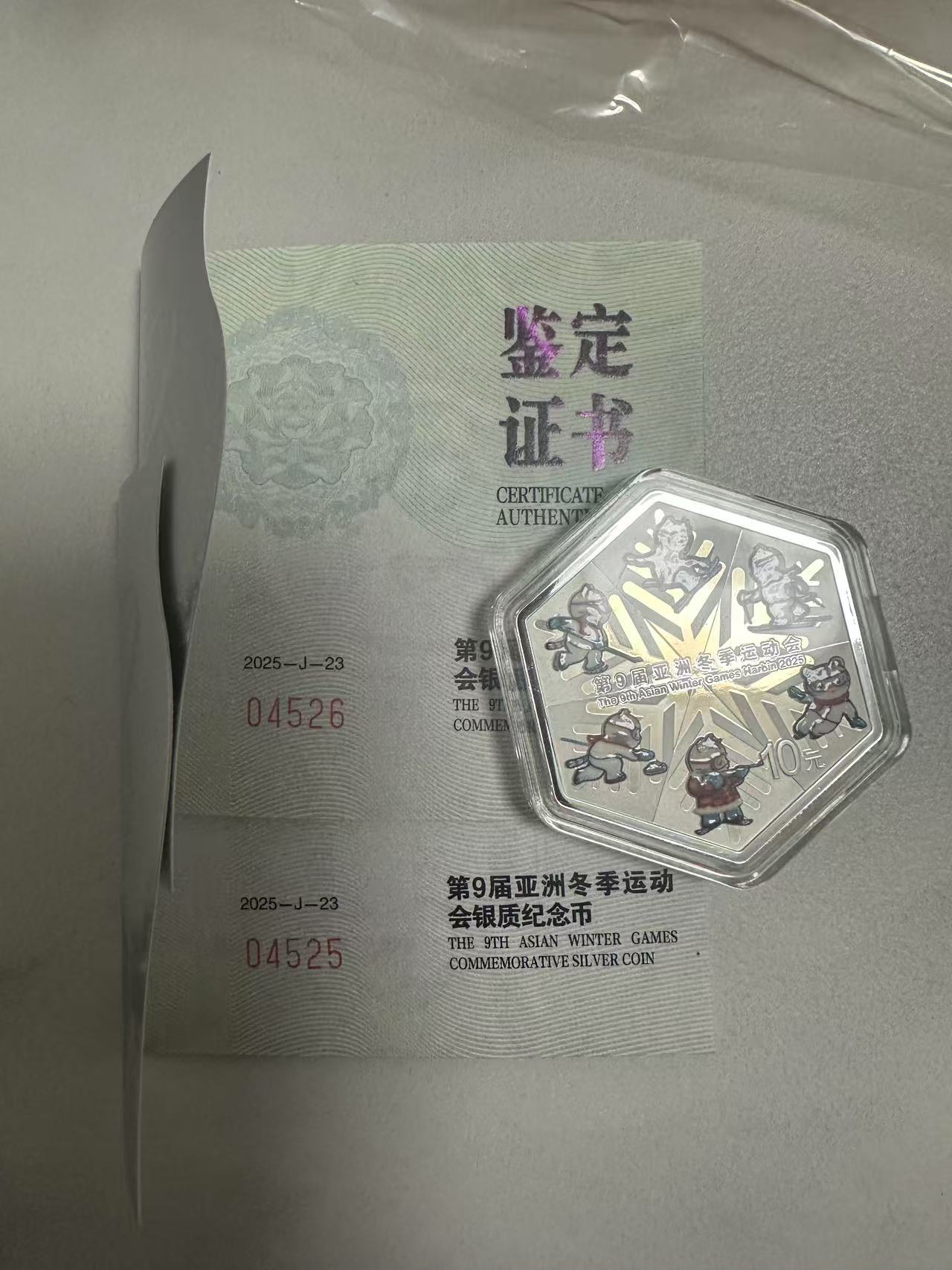 出售现货第九届亚洲冬季运动会30克六边形银币 4525 4526 号码高位带4