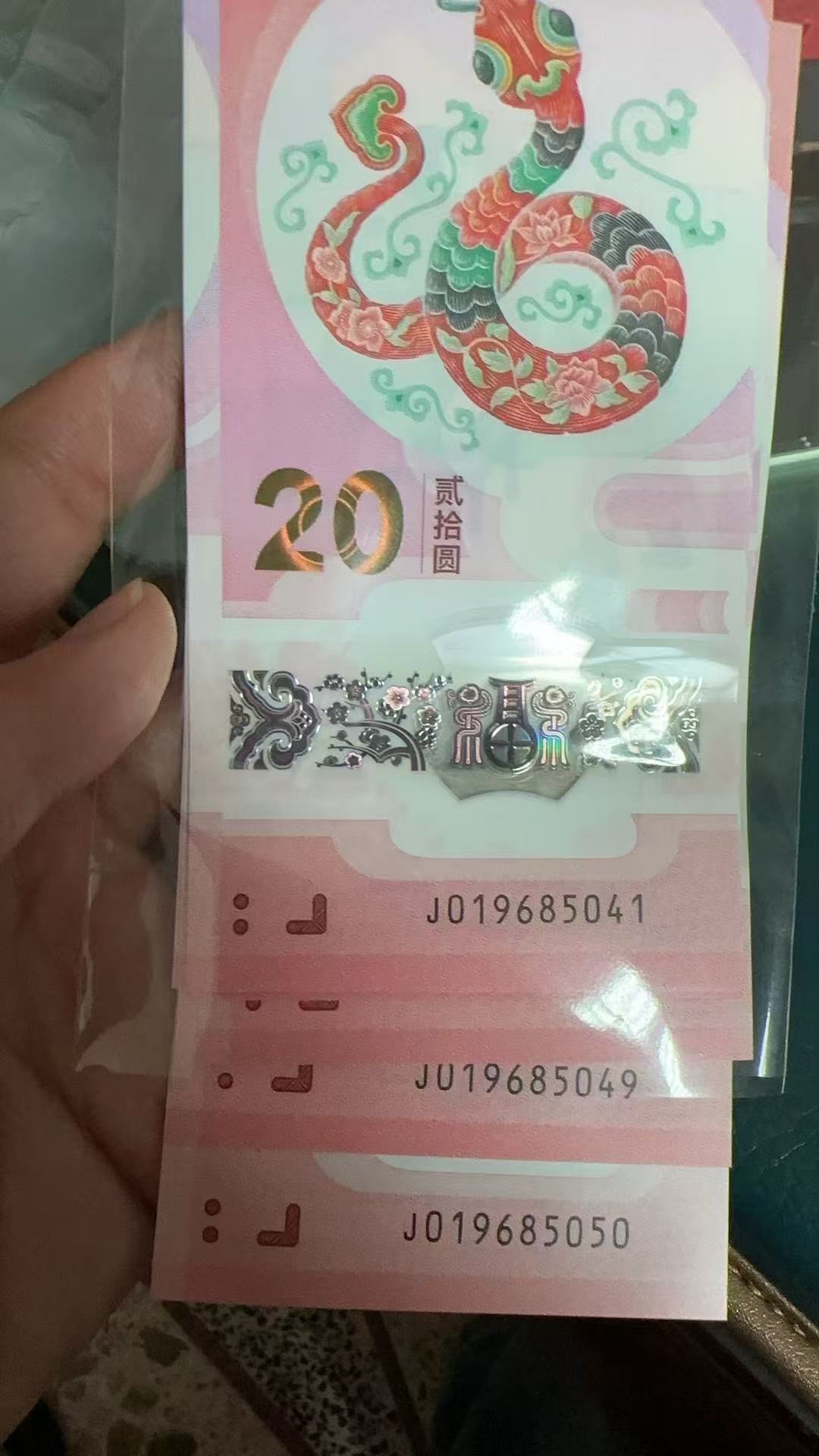 → 430元出蛇钞019685041-019685050,年份开头,最后一张19685050生日号