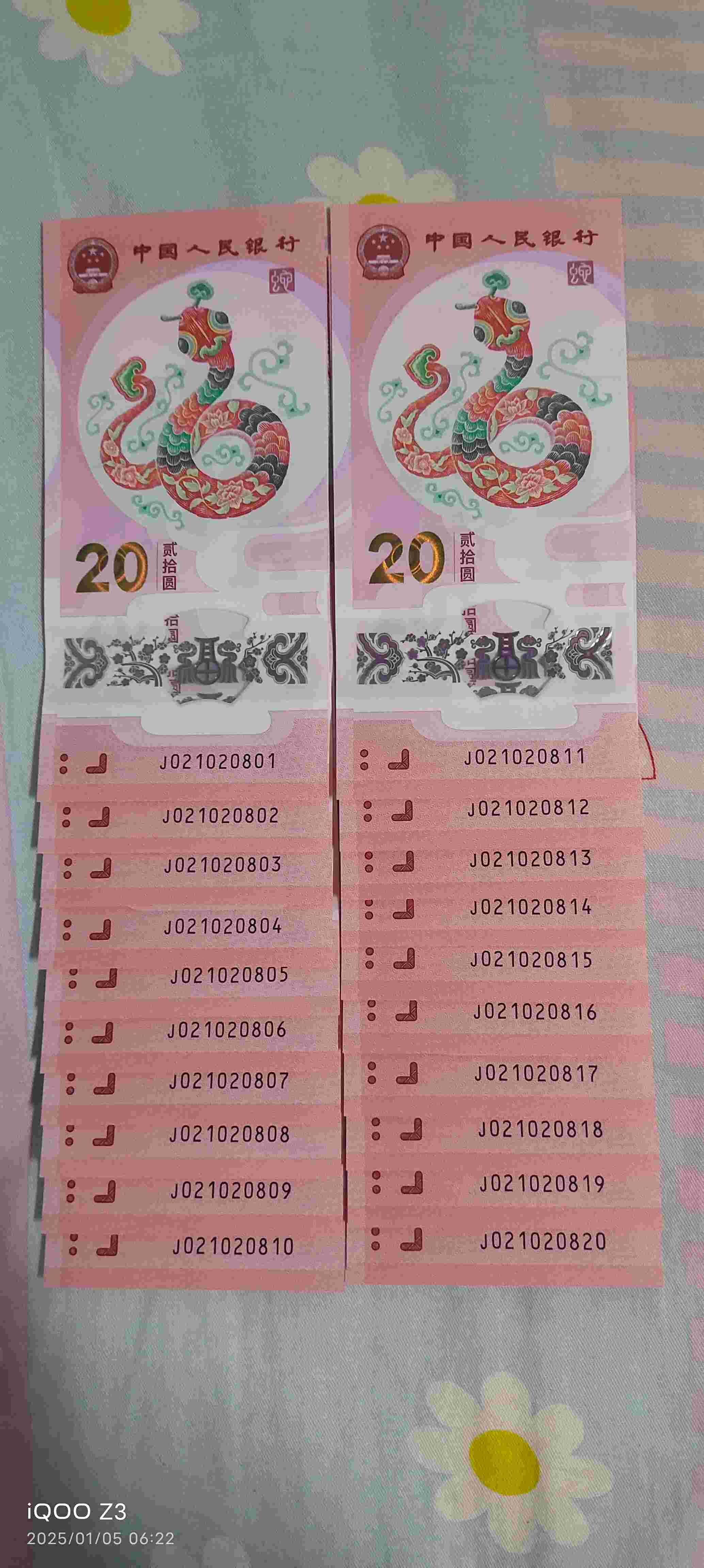蛇钞,0128组合!号码如图:021020801~021020820,标准20连!适合收藏,品相完美。3100元全国非偏远包邮!18640625641微电同步!多网同售以本人确认为准!