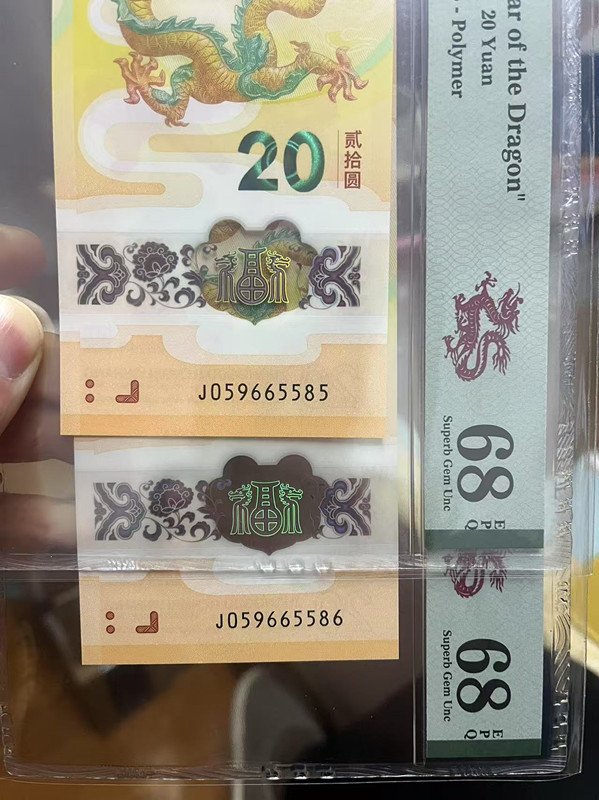 龙钞金马王全大号PMG68 2连号