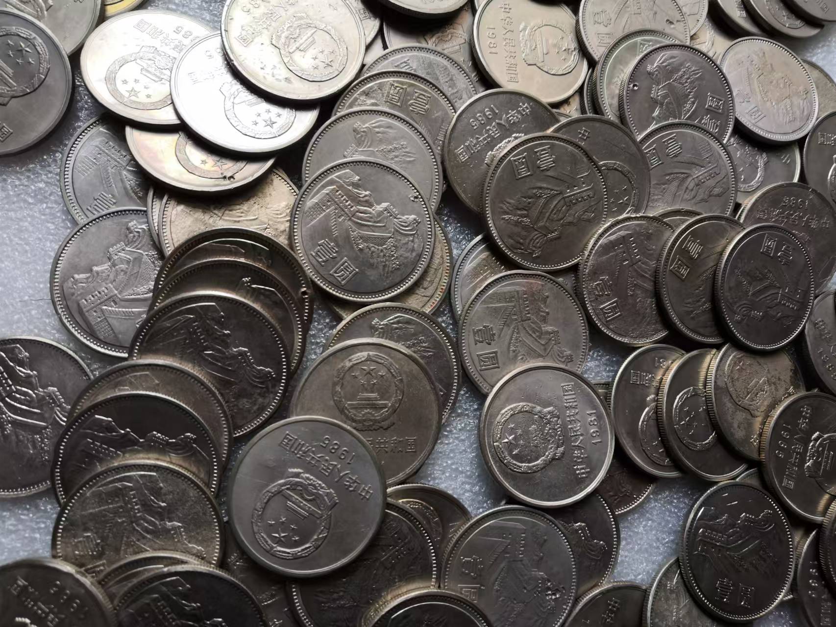 81年66枚、85年34枚币有瑕疵、无穿孔一起出售25元每枚,实物拍摄包品如图包真售后非假不退