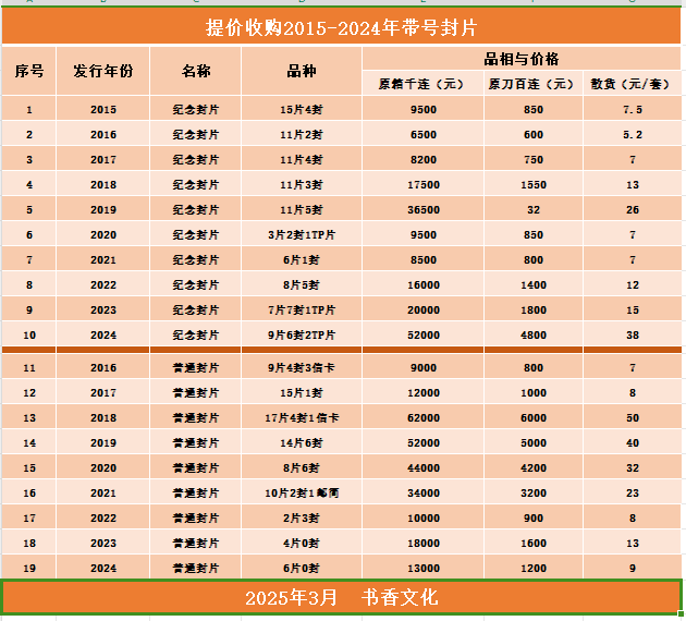 提价收购2015-2024年带号封片