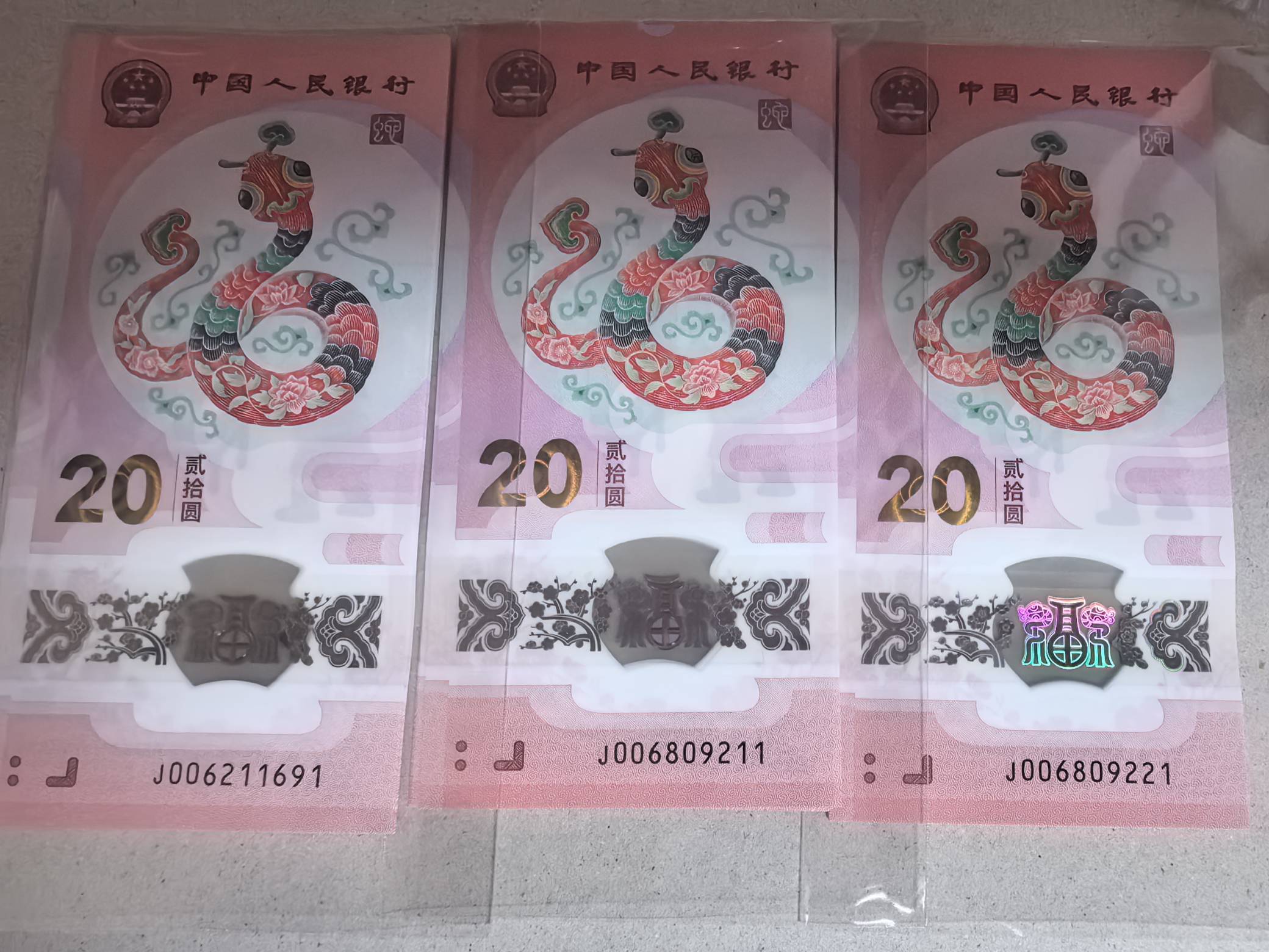 出3组无3457的蛇钞标十, 包含朦胧,如意,豹子号