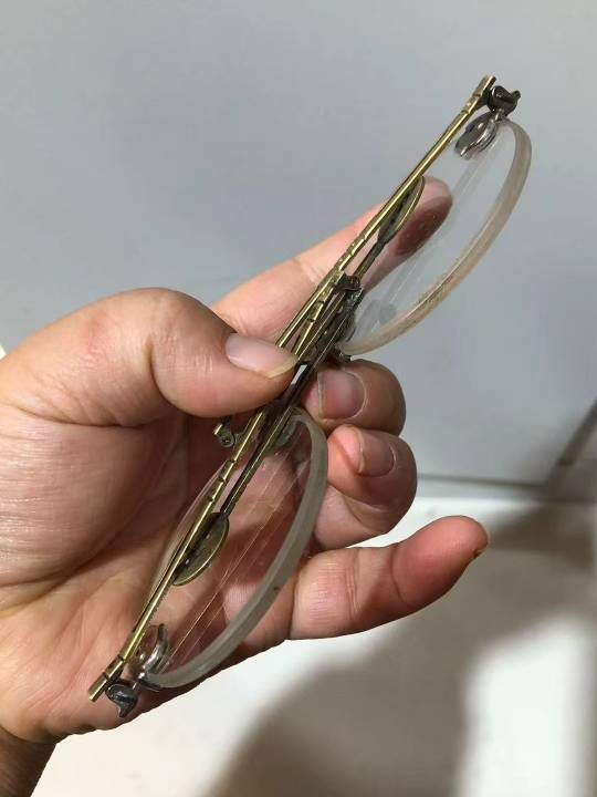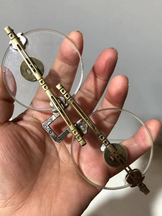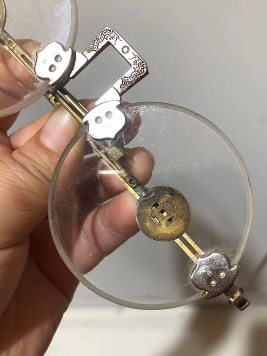 清代白水晶石平光眼镜,尺寸:镜片5.6*0.4厘米,虽然是老眼镜,戴上非常舒服清楚,品相如图,实价980元,保真保老,懂得来。