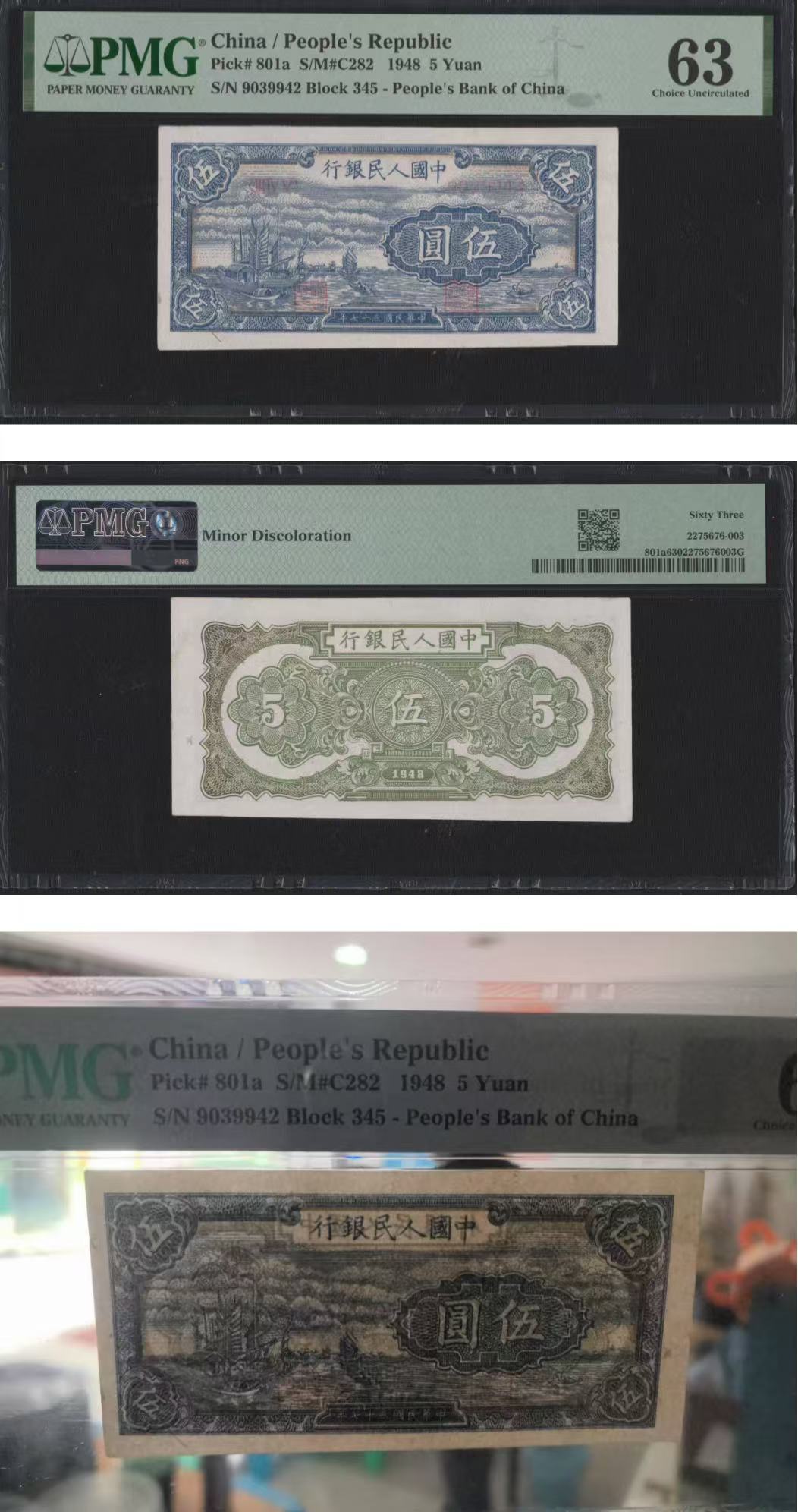 一版帆船美评PMG63全新直版,背标轻微褪色,不易上分的品种,自然边角,对光无黑线,售价3500包顺丰