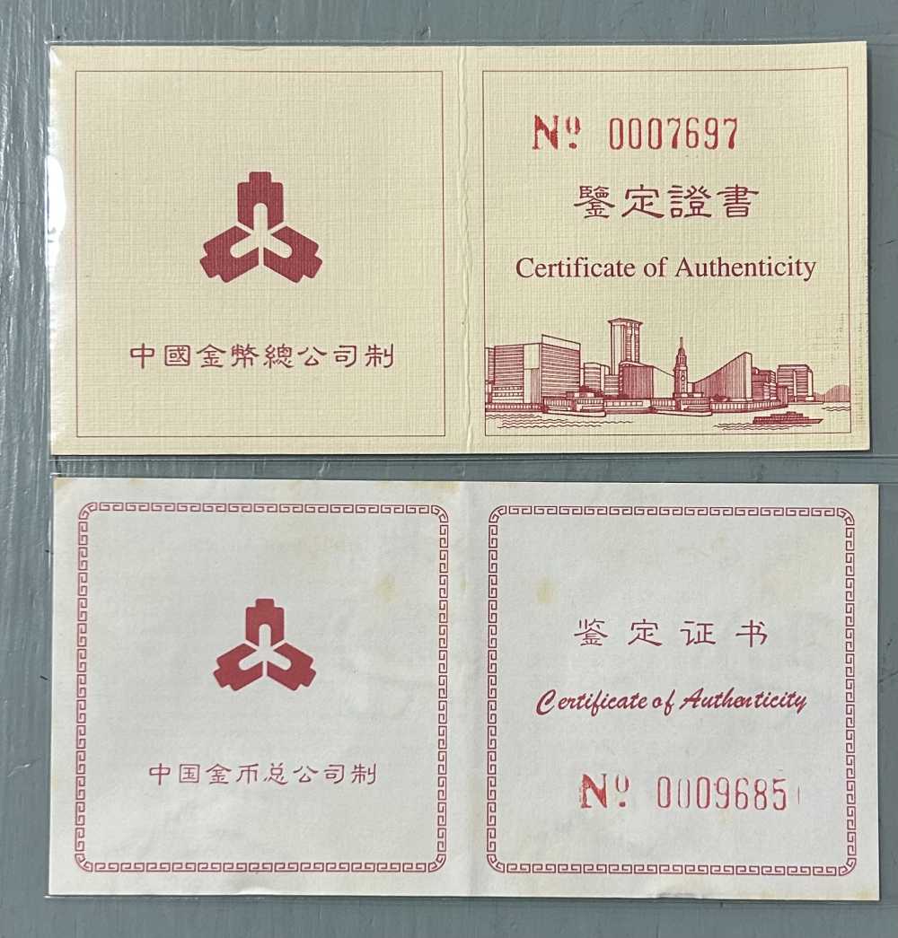 香港回归二组和澳门回归一组金币各一枚