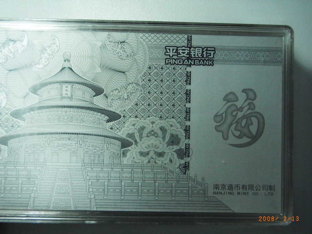 南京造币公司,纯银共100克.800元.