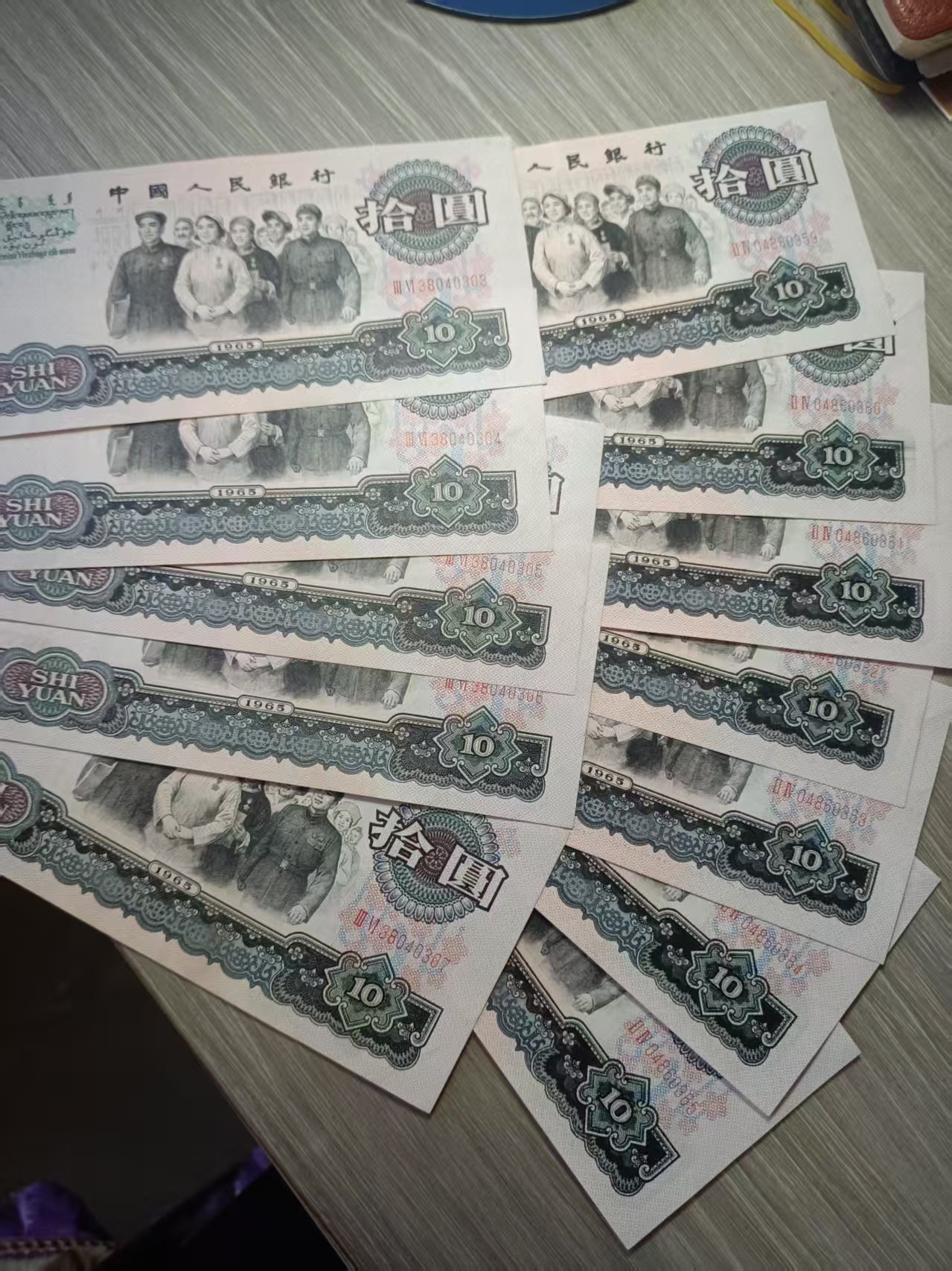 5连,7连 有捆折印吧,品相不绝,灯下无斑,115一张