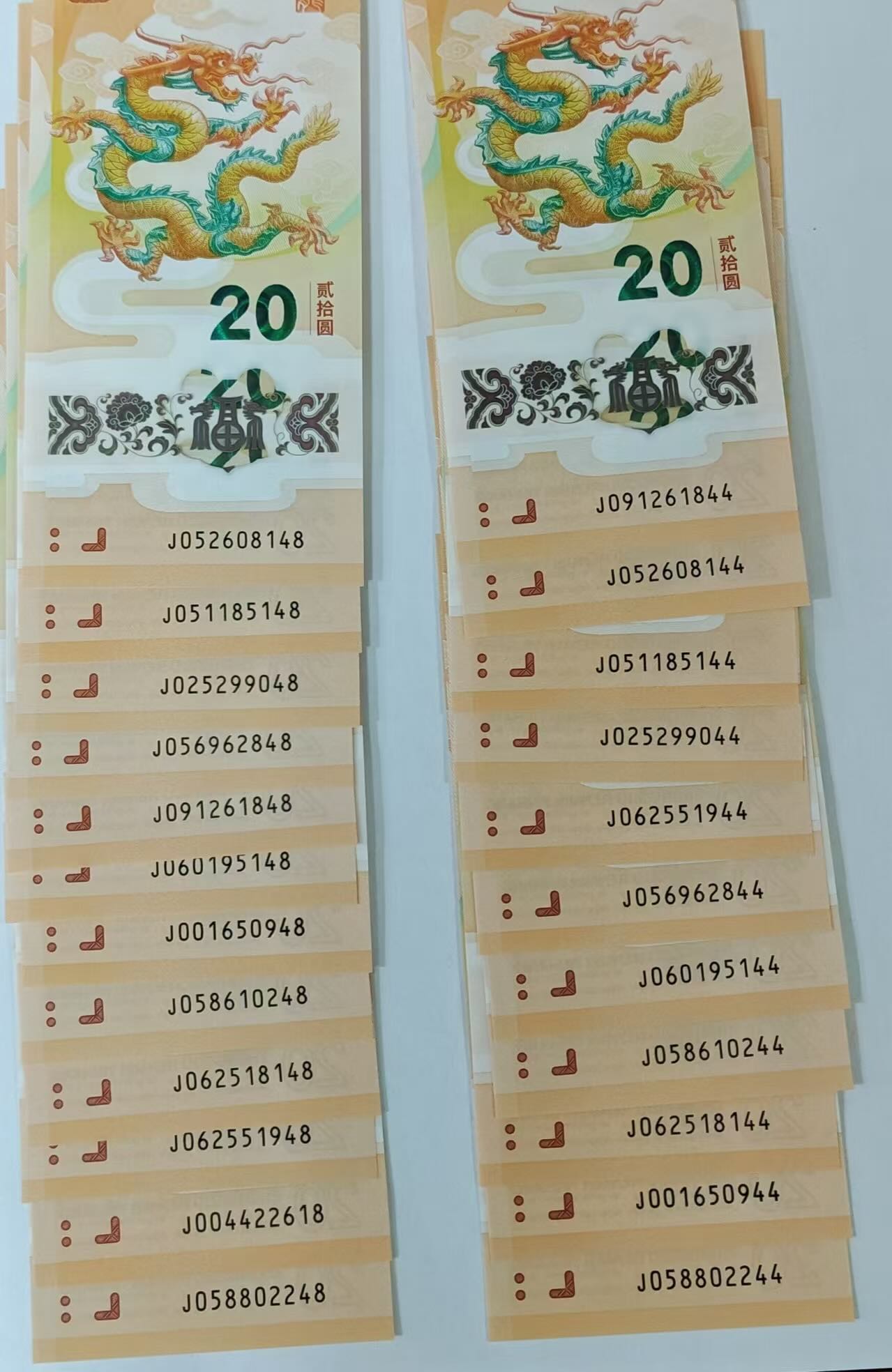 出带4尾8、尾44小龙钞