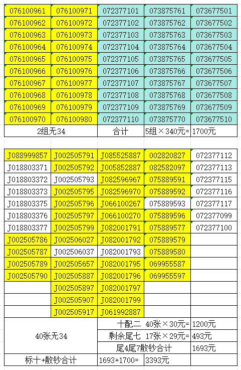 无4标十340元/组,(不要尾31,391,尾71组10配2)。