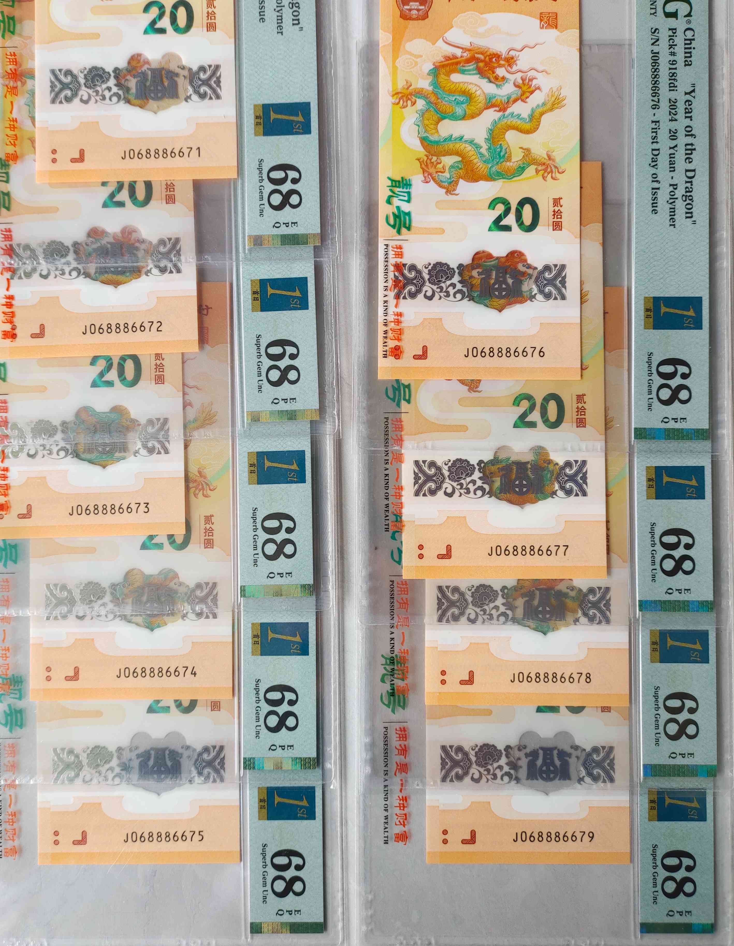 售龙钞PMG68分首日满号金钩王9张。