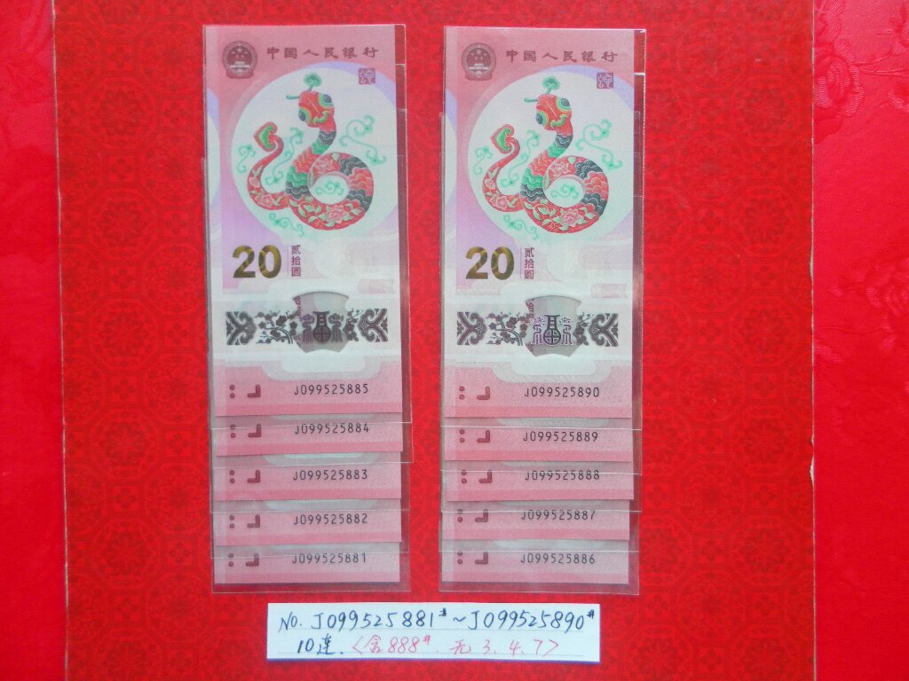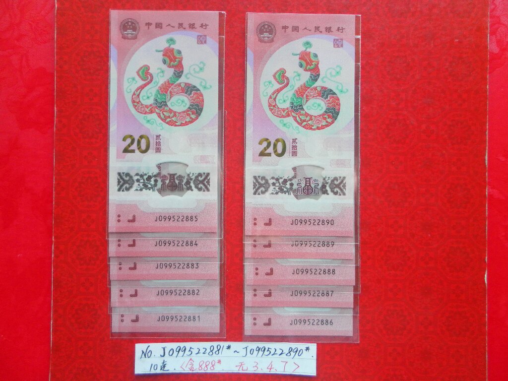 出售2组如意号蛇钞(尾888):