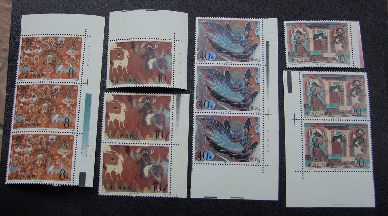 T98 吴昌硕 厂铭  微黄售32元;T106 熊猫 厂铭售24元;T104 花灯 方连 上品售49元;J37  五四 方连2个 上品合售63元;T130 泰山 部分厂铭 上品3套合售66元;微信联系确认。以上包原胶边纸不折,包邮收件地址见微信。