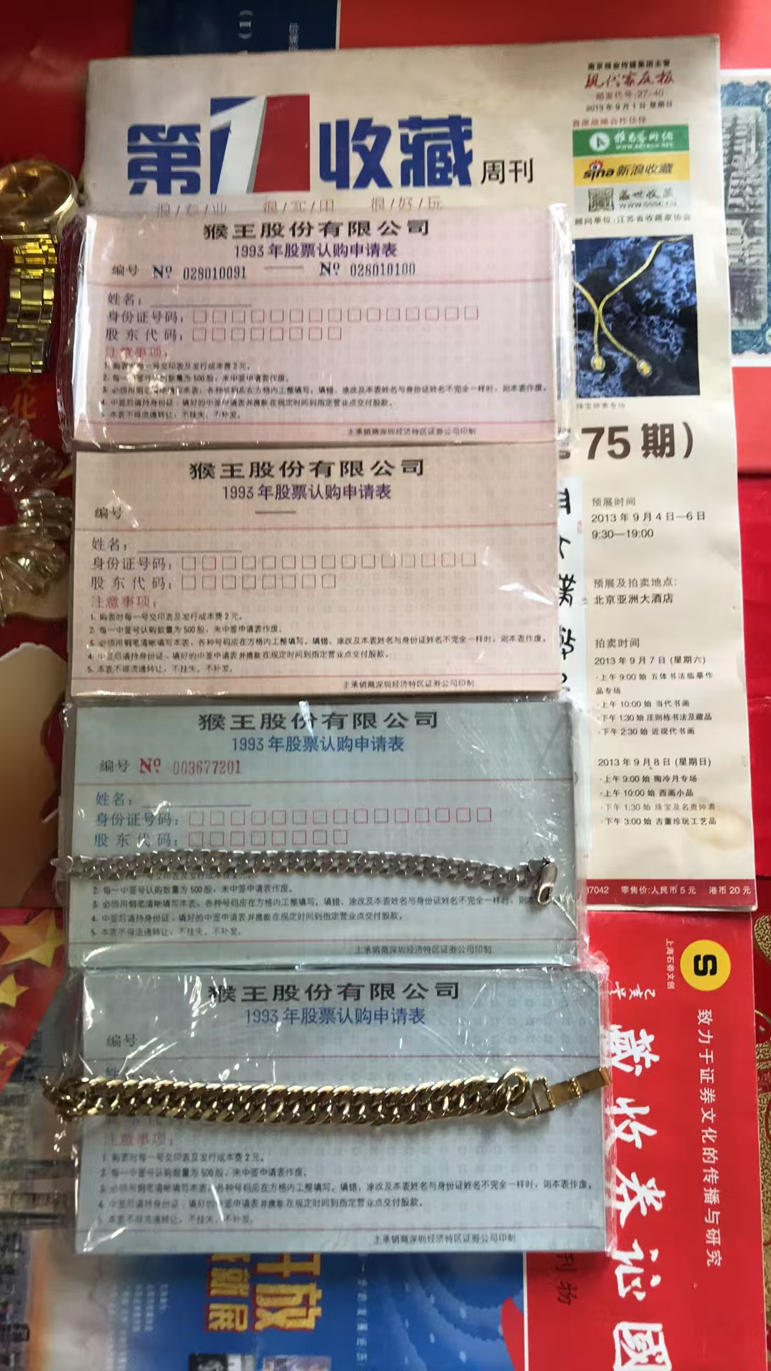 批发中国上市公司稀缺三级文物极品北京城乡贸易中心股份有限公司社会公众股票专项定期定额存款单大全张2000枚十品600万元。经党中央国务院证券监督管理委员会批准向全国各地人民公开发行。暂知存世量6000枚左右。印钞纸底纹花纹字体66处隐藏隐形暗记萤光显示金黄色编码钢印凹凸有致多种公章鉴印高新尖端科技防伪标识。二套人民币王暂知存世量一万枚品相好的市场价39一枚。猴一轮大版票暂知存世量一万版市场价65万元一版。没有比较就没有伤害。物以稀为贵。中国上市公司金融证券历史文化遗产三级文物极品证券钱币愽物馆永久收藏。藏。…………………………………………………………………………………………………………………………………………………………………………:::::::::::::……………………………………………………………中国上市公司金融证券中国收藏品艺术品市场上最后一座待开发挖掘的含金量999的金矿:上市公司股票认购证是经党中央国务院证监会批准向全国各地人民公开发的改革开放股份制体制中产生的新生事物具有划时代里程碑的历史重大意义。上市公司股票证券存世量稀有的金融证券历史文化遗产文物精品极品罕品孤品收藏品艺术品是世界上独一无二的朝阳行业第一暴利润行业。一个黄金彩金周期将创造产生几万亿元人民币纯利润。中国金融证券收藏品市场经过三次大牛市分别是第一次1993年至1998年持续六年,第二次2003年至2007年持续五年,第三次2012年至2017年持续六年。个人观点前瞻性分析判断预测是2026年至2029年将迎来大牛市持续四年以上拭目以待。马云先生曾经说过:“撑死胆子大的,饿死胆子小的”。前房地产首富王健林先生曾经在电*视台上说过:“无论是清华远是北大,都不如敢想敢做胆子大”。顺其自然财商导师说:“无论是天大地大都不如金融证券钱币博物馆里的文物精品极品罕品孤品恩情大比天高比海深”。此信息仅供投资理财收藏稀有资源资产管理配置多元化金融衍生品证券化增值保值赢利套利参考用。