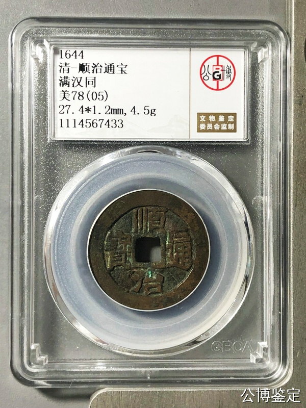 北京公博评级顺治壹枚,美78分 满汉同,老房梁传世品,原汁原味,200