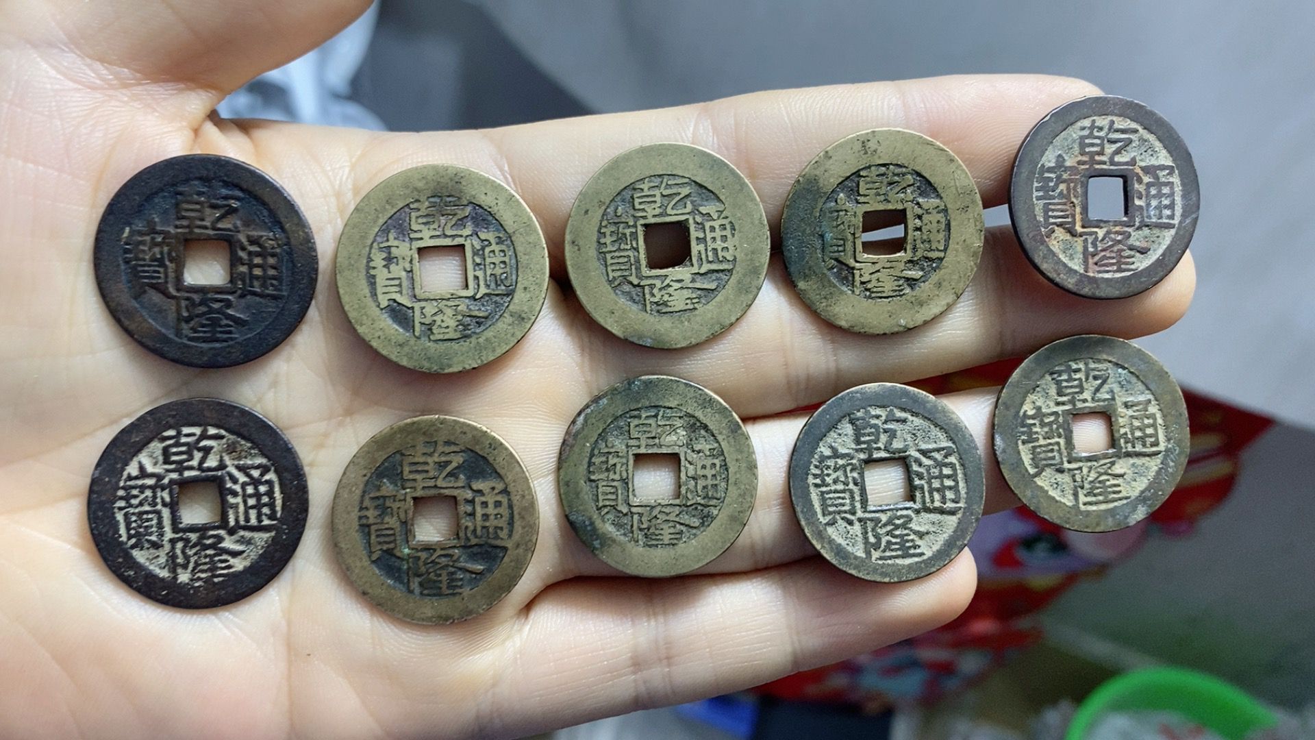 刚收到的美品大个乾隆10枚