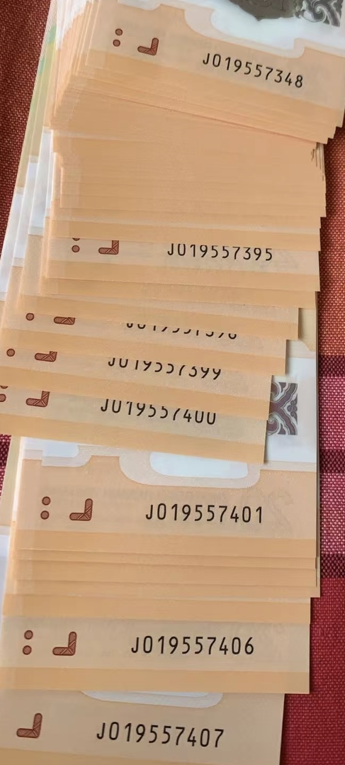龙钞无4六十连号,中间五组标十,有尾81组。无瑕疵,60张一起8200包邮