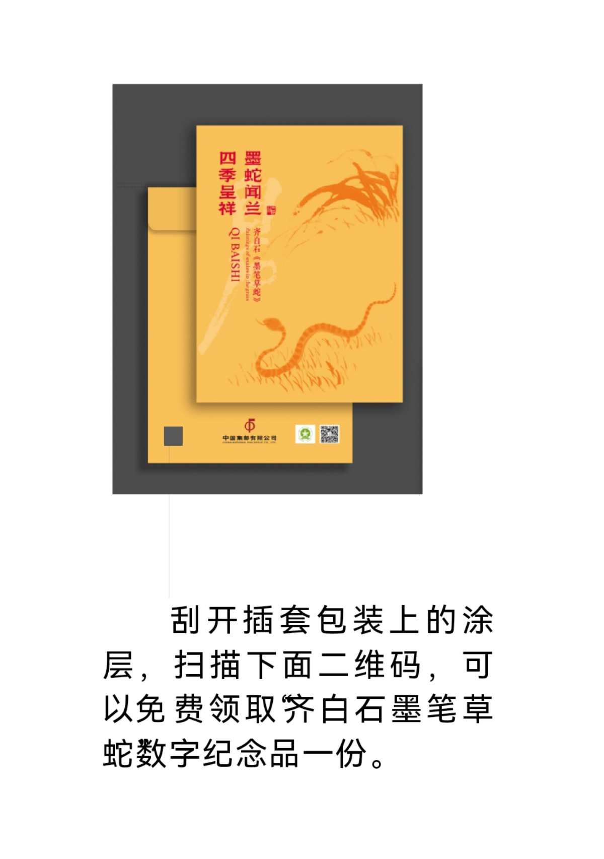 → 百年巨匠~齐白石~生肖作品~墨笔草蛇数字纪念品