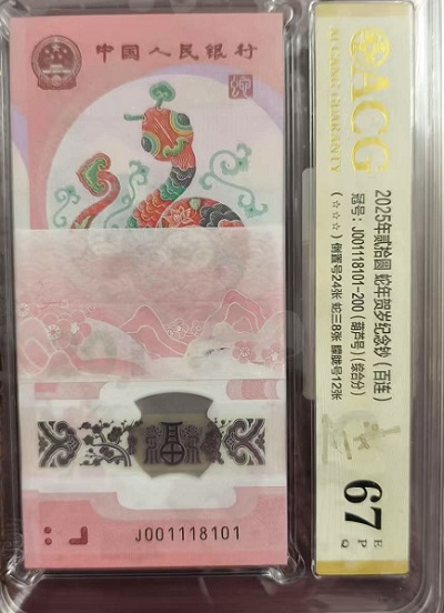 → 出蛇钞018蛇三倒置标百爱藏评级67分 58000包顺丰电联确认