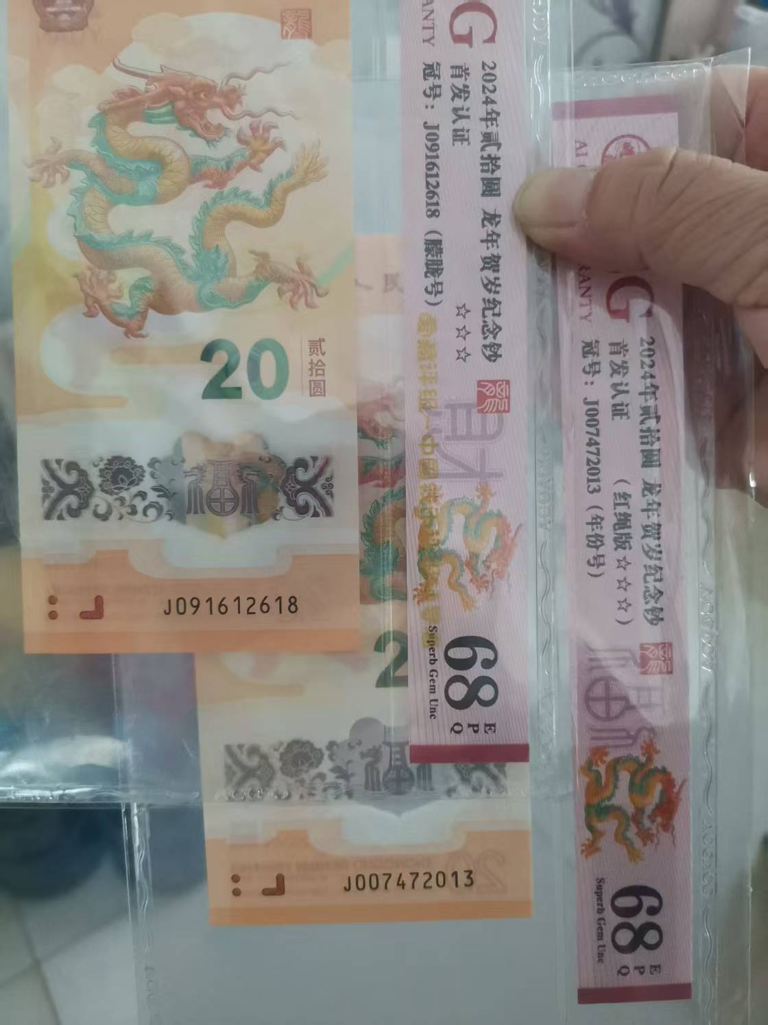 → 卖小龙钞 朦胧号尾8 等爱藏评级68分2张